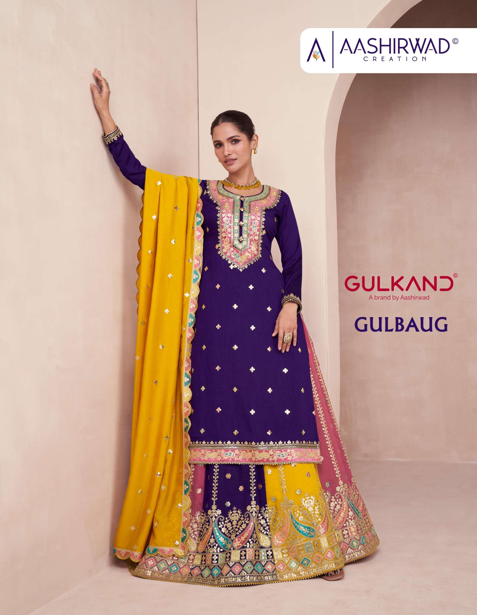 Aashirwad Gulbaug Embroidery Premium Silk Readymade Dress