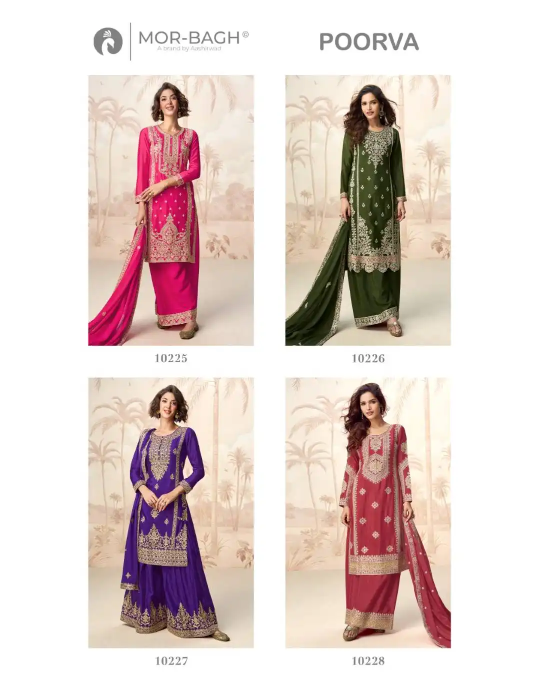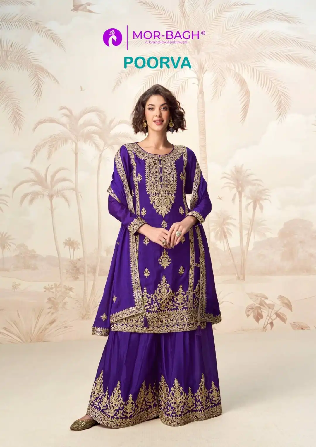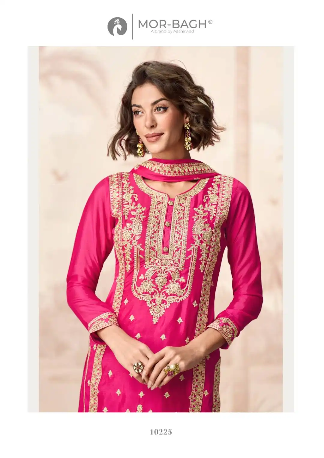 Aashirwad Poorva Chinnon Silk Readymade Kurti Palazzo Dress