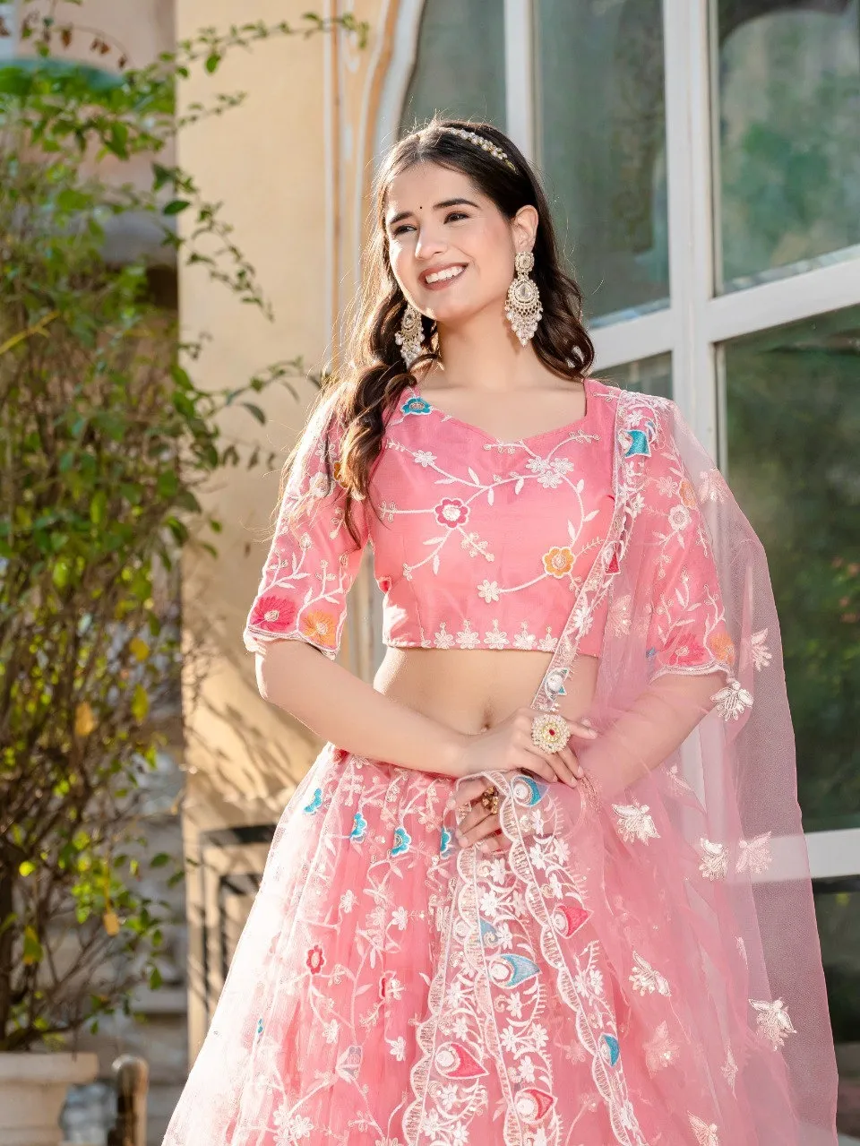 Aawiya 04 Pink Soft Net Thread Embroidery Lehenga Choli