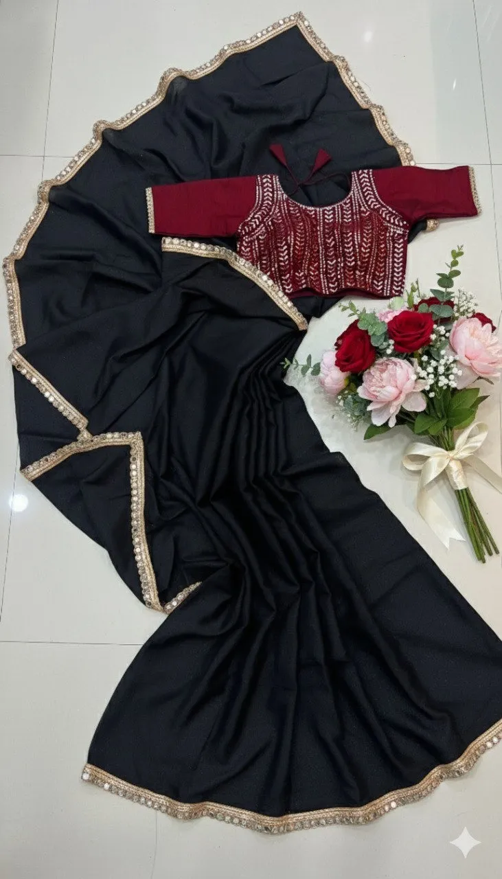 | Saree | STAR GEORGETTE, WORK- PLAIN WITH mirror LACE BORDER, LENGTH- 5.5 METER |