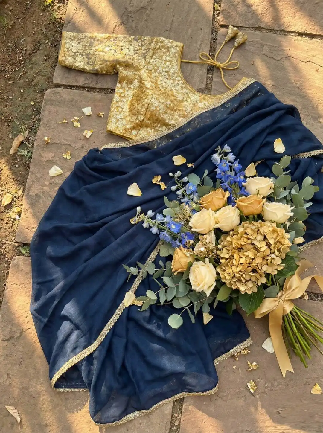 Aawiya 13 Star Georgette Saree With Readymade Blouse Wholesale