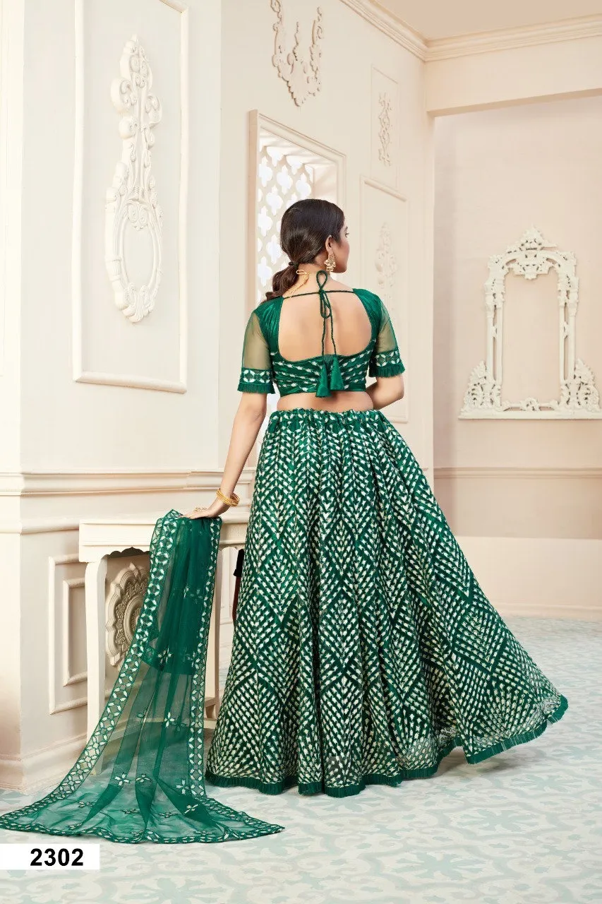Aawiya 2302 Green Soft Net Thread Embroidery Lehenga Choli