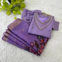 Alia 388 Roman Silk Lavender Kurti Pant With Dupatta Hand Work Design