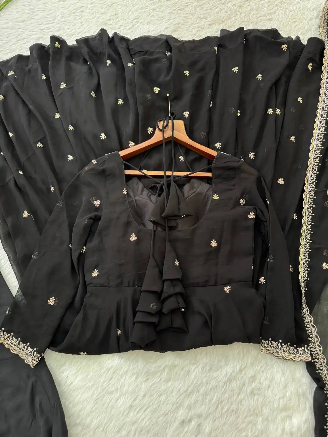 Dupatta:Fox Georgette Heavy Four Side Sequence Embroidery Lace Boders , Full Dupatta Allover Butti Sequence Work