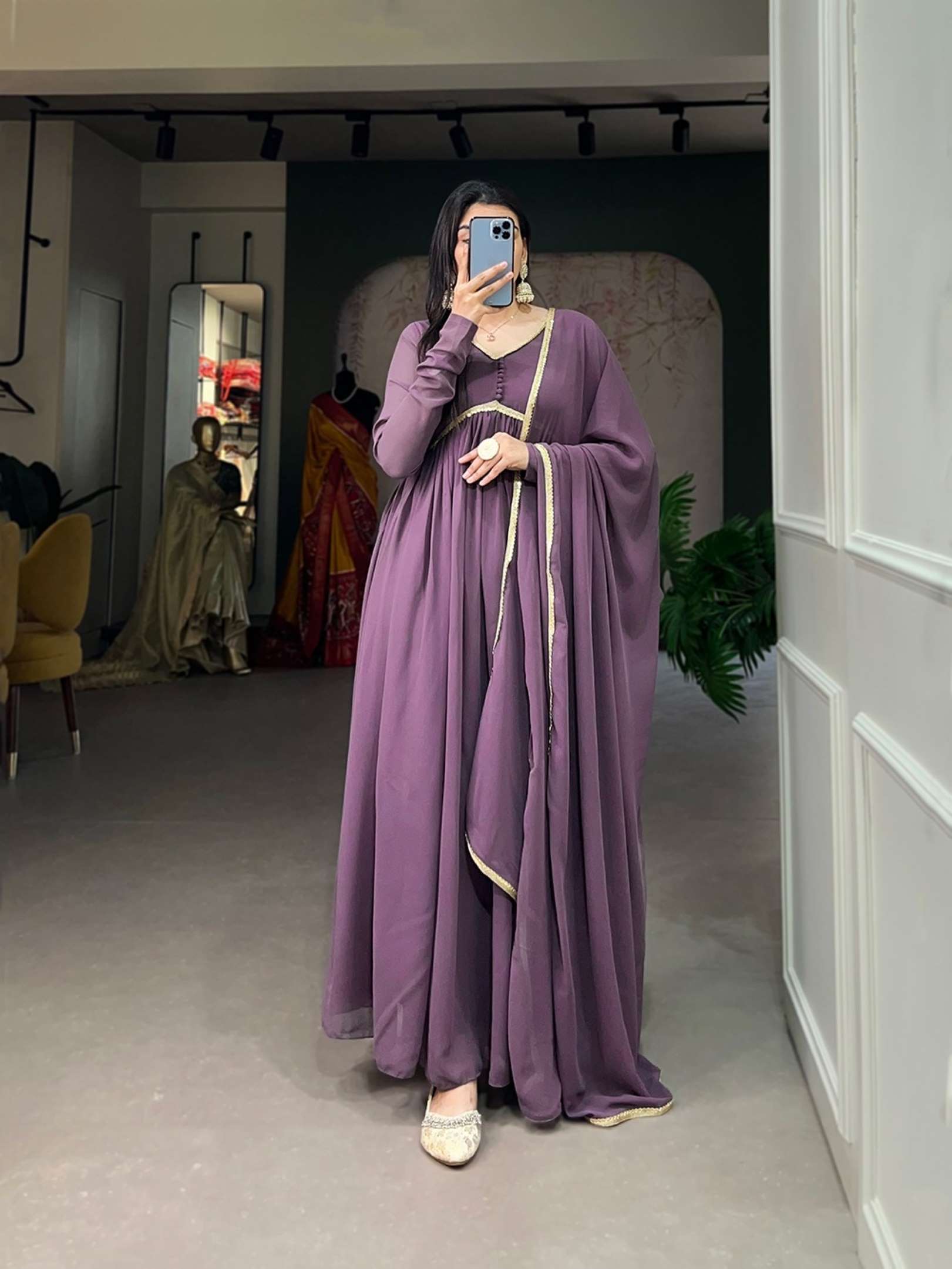 Sumshy Alia Style Georgette Ladies Gown With Dupatta