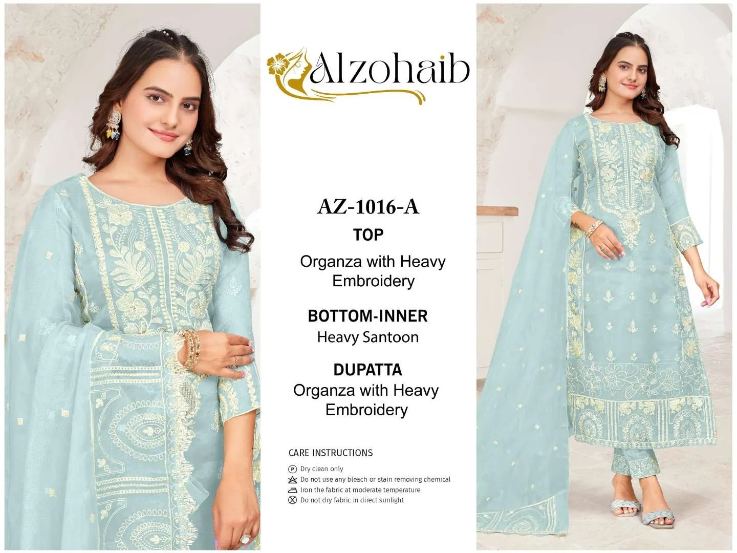Alzohaib Az 1016 A To D Organza Pakistani Salwar Suits Wholesale