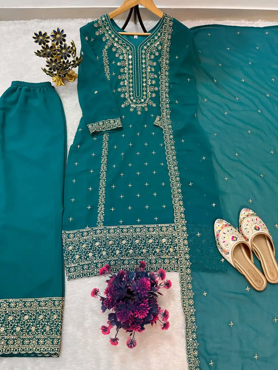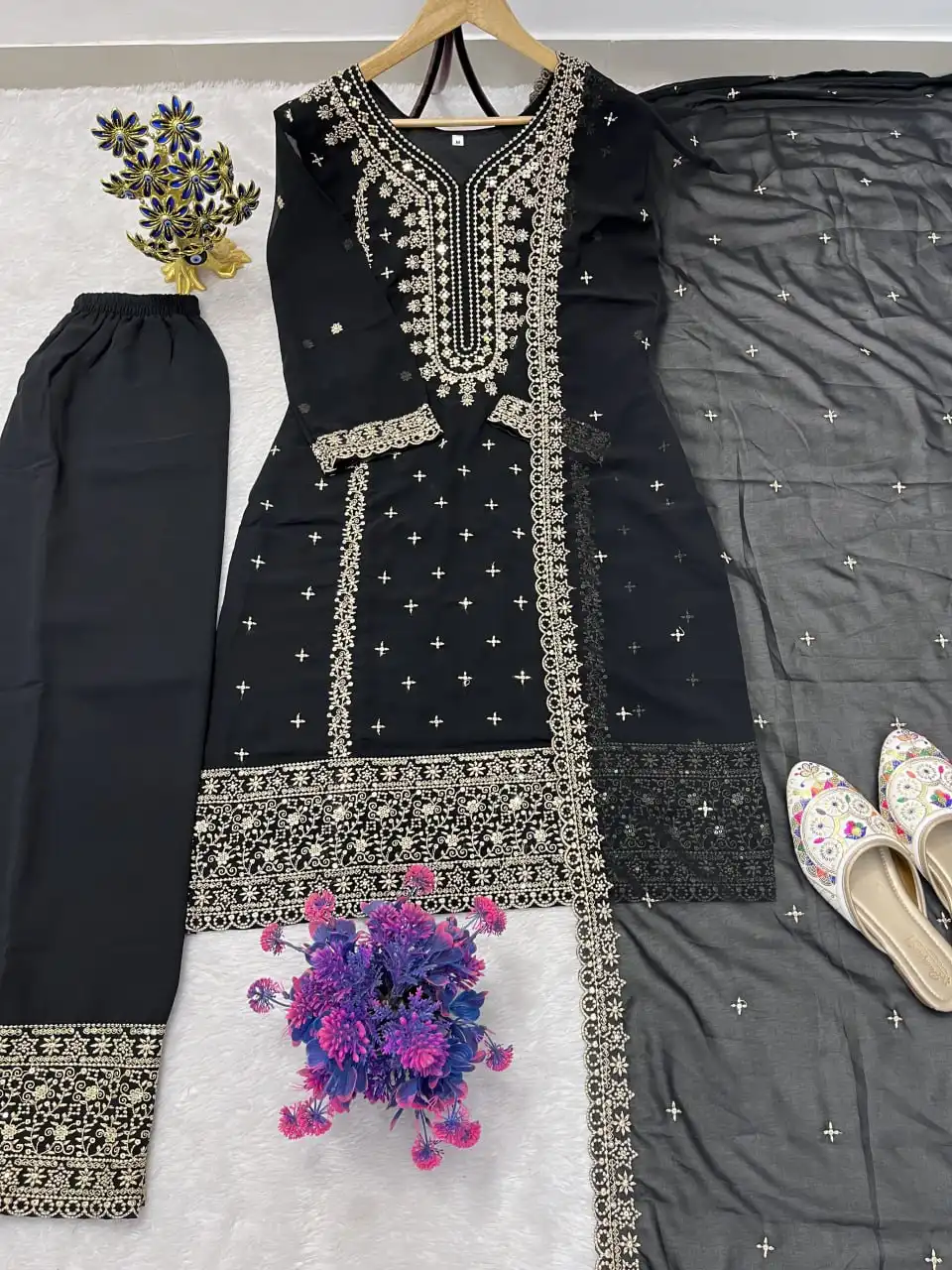 | Dupatta: | HEAVY FAUX GEORGETTE WORK : HEAVY EMBROIDERY SEQUENCE WORK SIZE :2.2 mtr |