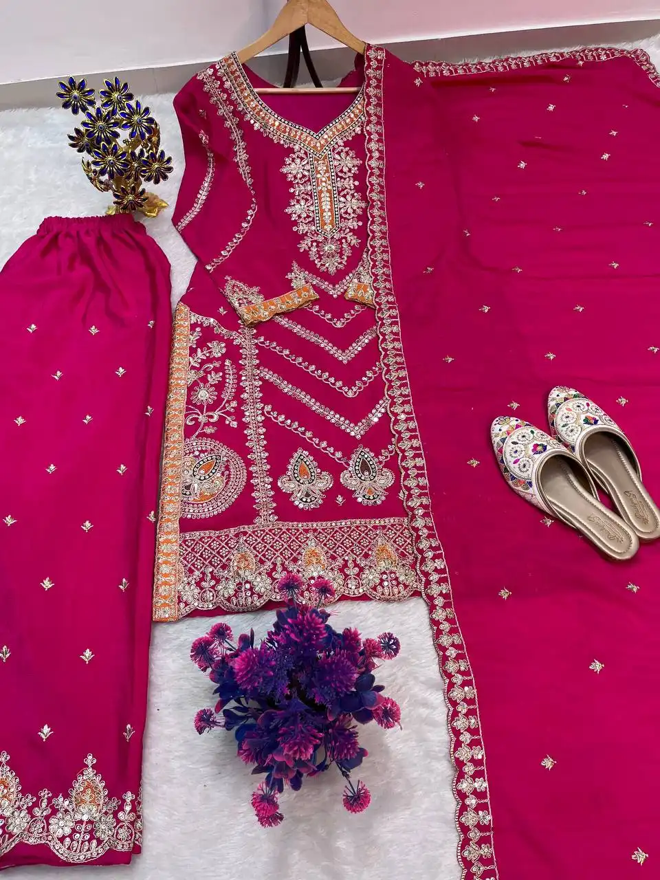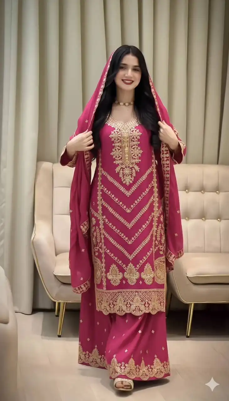 | Top: | PURE CHINON SILK WORK : HEAVY EMBROIDERY SEQUENCE WORK INNER : MICRO HEIGHT : 40-41”inch |