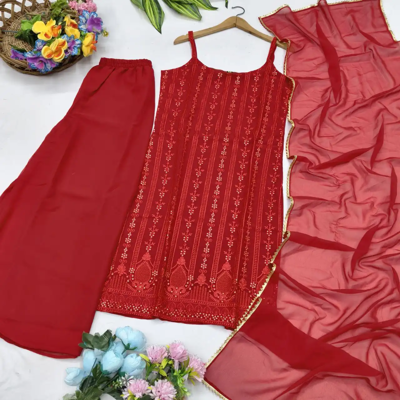 | Top: | Georgette | Sleeve Length : Sleeveless | Pattern : Embellished | Length : Upto 43 | Work : EMBROIDERY Sequence |