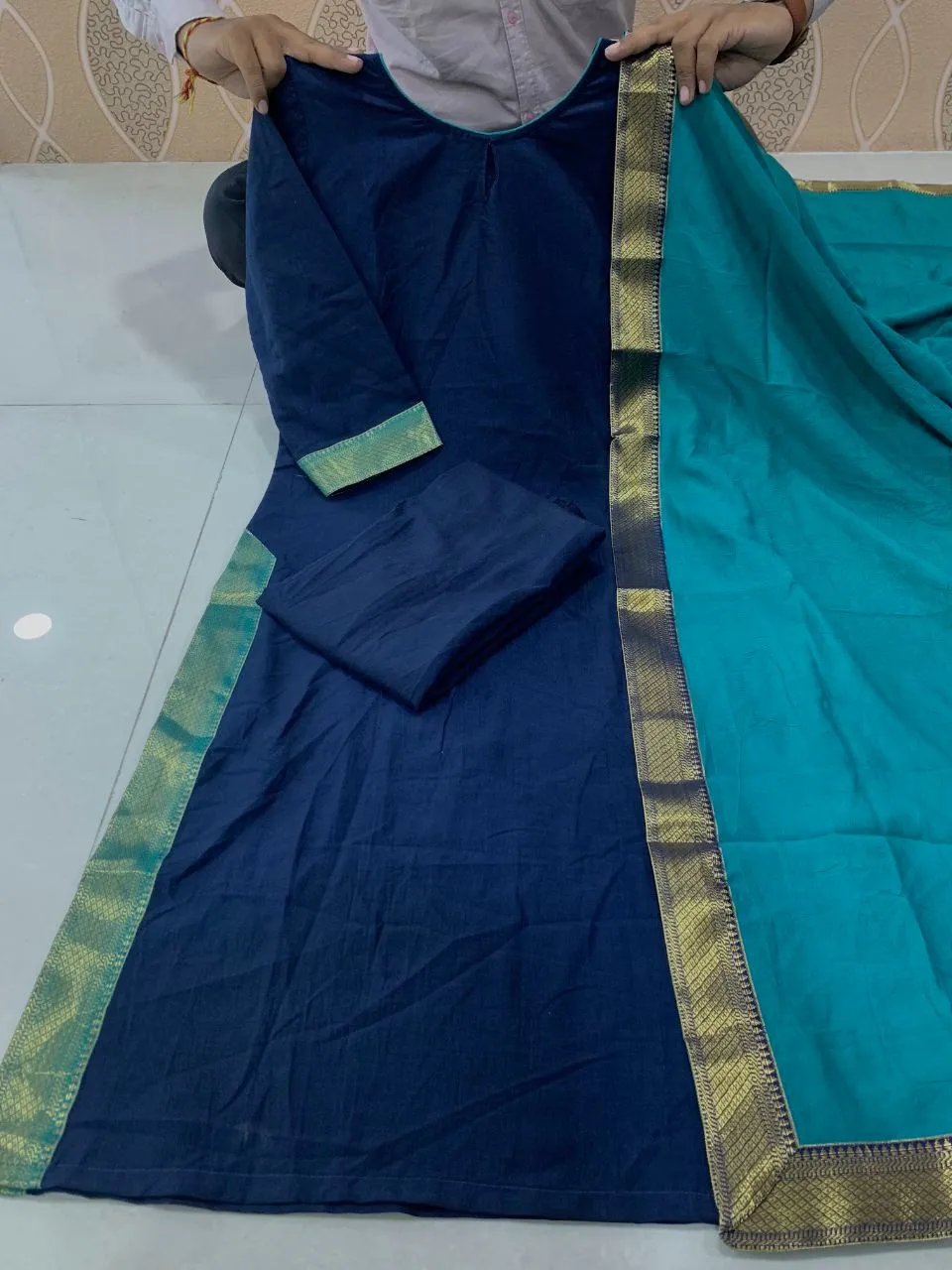 Top Viscose, Pure Banarasi side lace, pure cotton lining