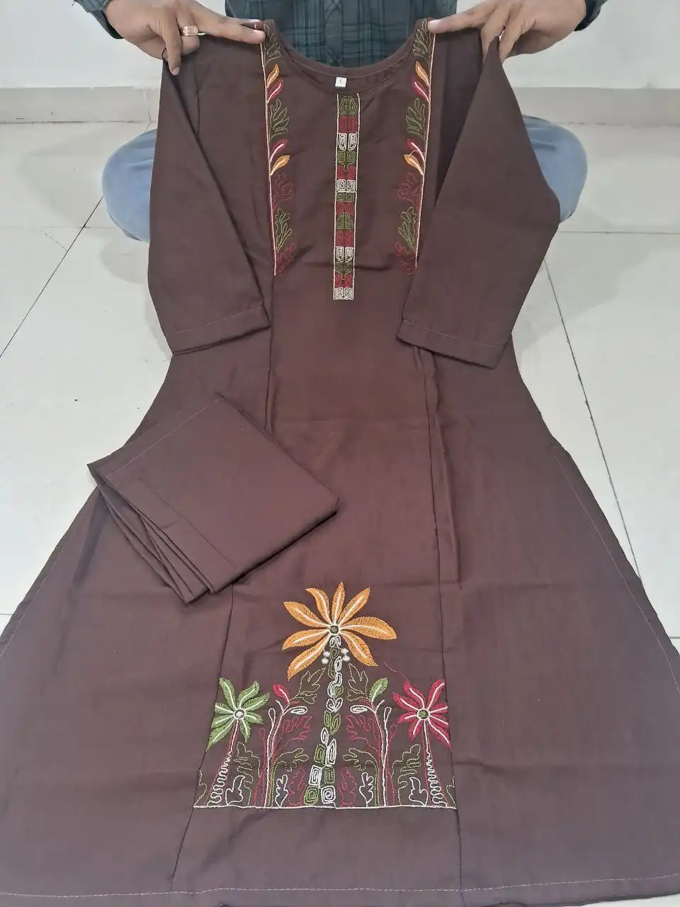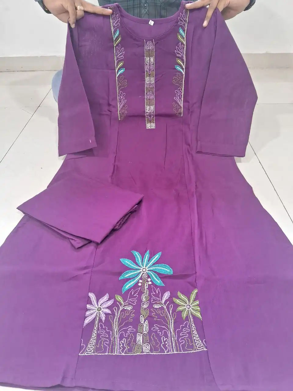 | Top: | Premium Slub Cotton | Work: Full Embroidery Work With Premium Work |