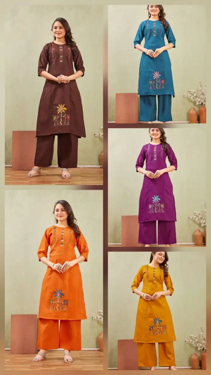 ATQ Vol 50 Slub Cotton Embroidery Co Ord Set Manufacturers in Surat |