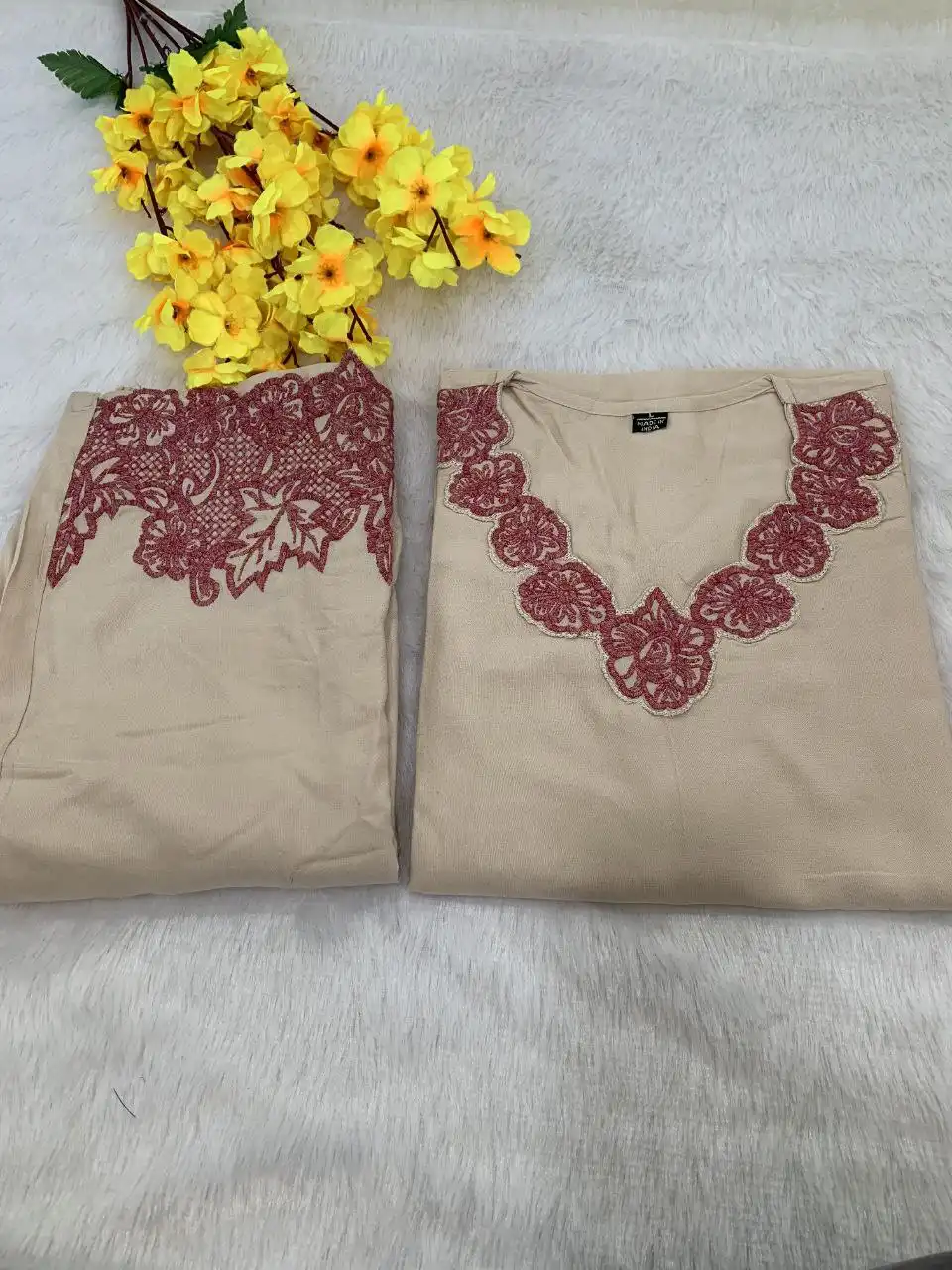 | Top: | Premium Rayon Cotton | Work: Full Neck Embroidery Work With Premium Work |