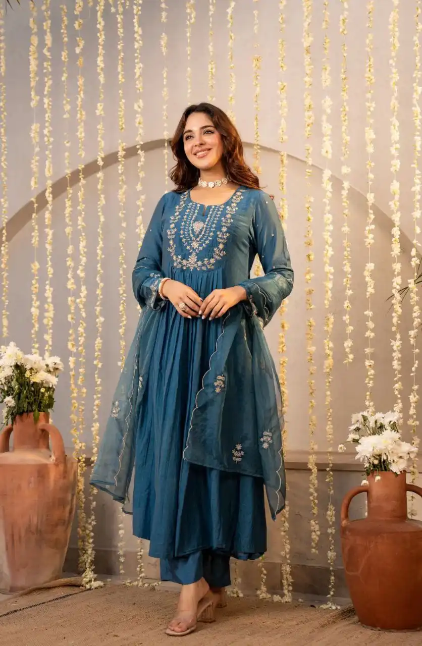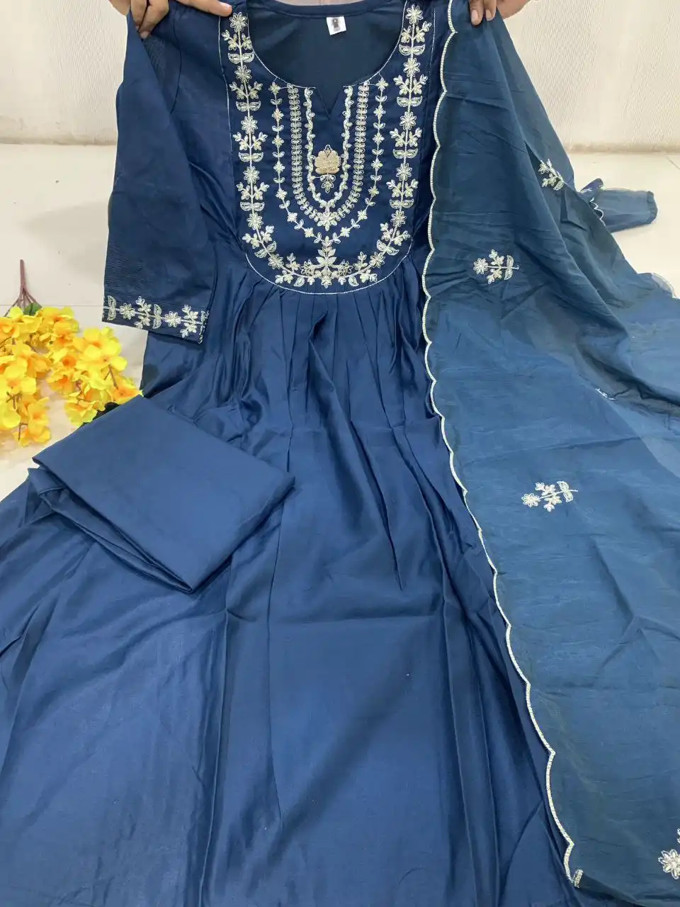 ATQ Vol 57 Chanderi Silk Embroidery Anarkali Kurti Pant With Dupatta Wholesale