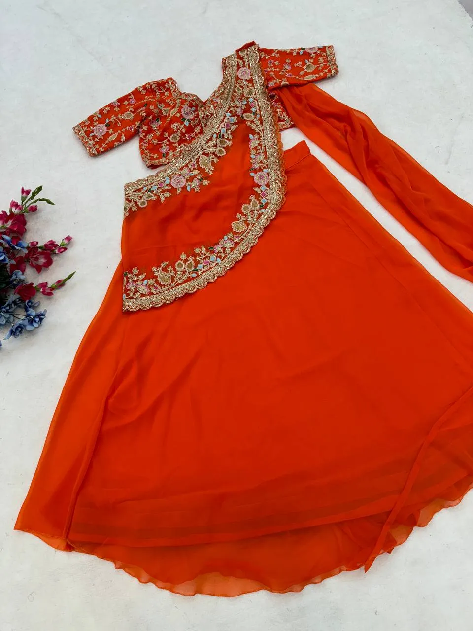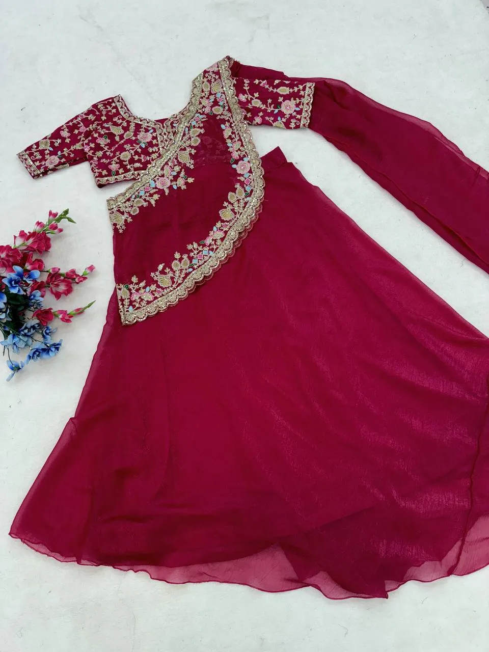 | Dupatta | Heavy Crunshi Silk, Work- Embroidery sequins, Fully Stiched |