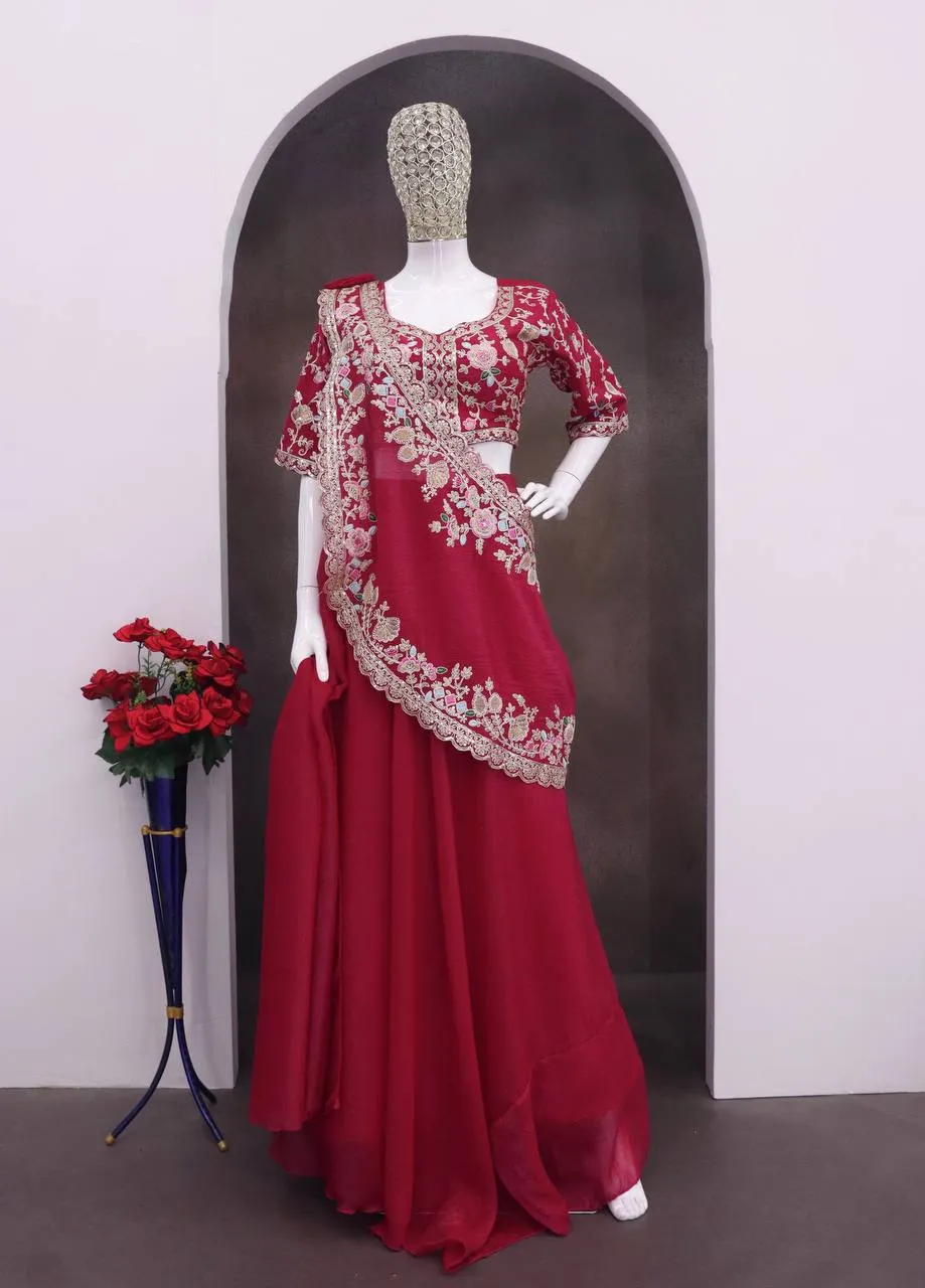 | Lehenga | Heavy Crunshi Silk, Size- Free, Inner- Crep, Flair- 3.5 MTR, Work- Embroidery sequins, Fully Stiched |