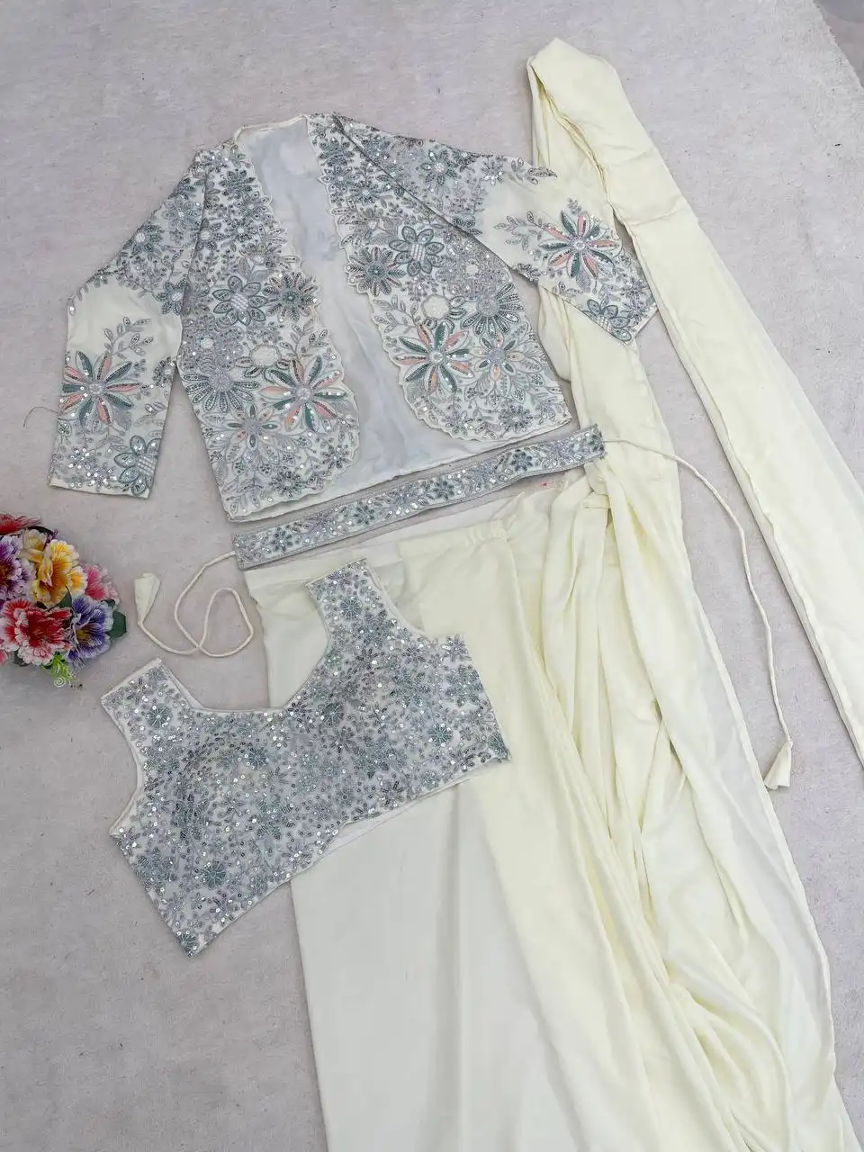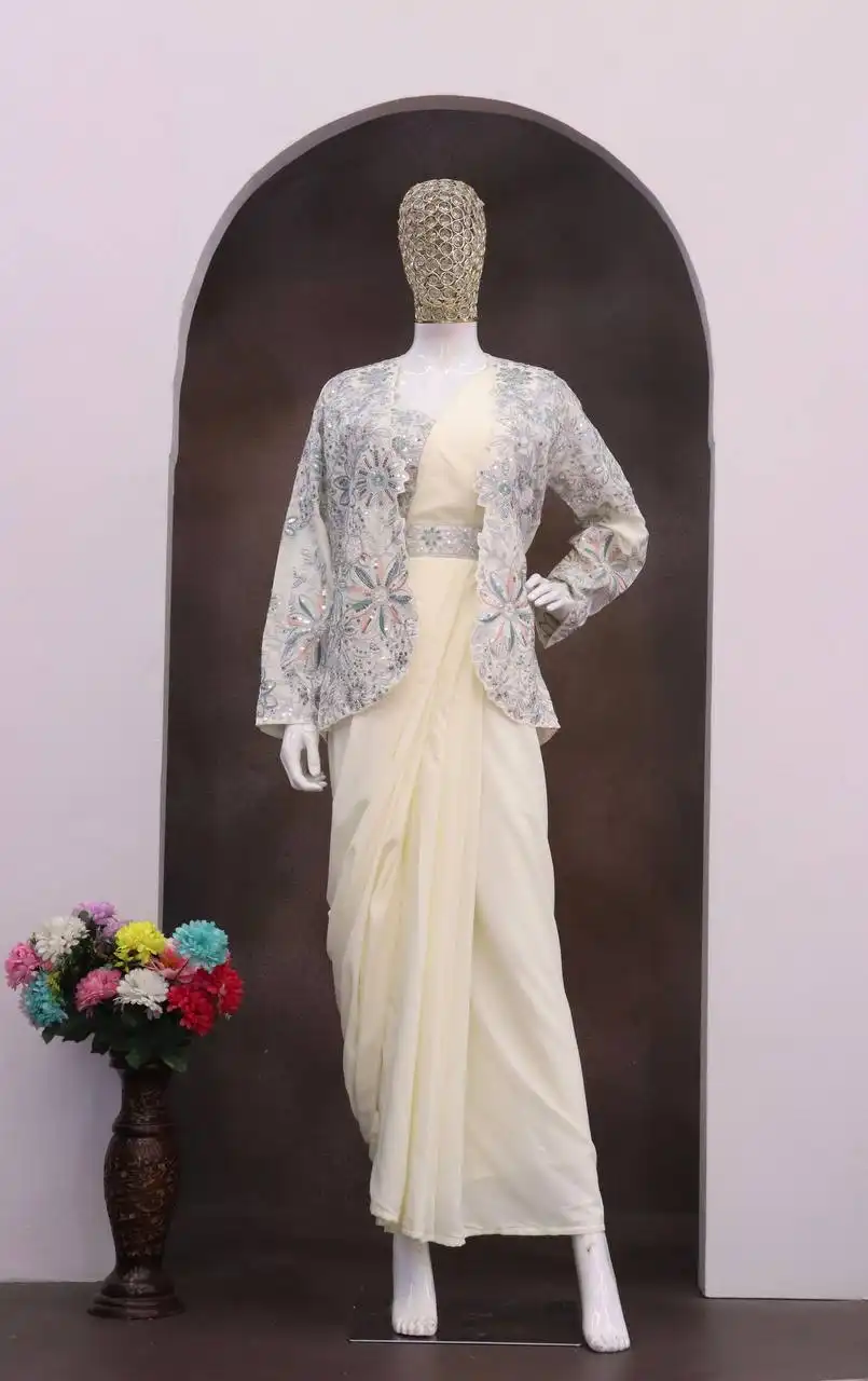 BDB 62 Pre Pleated Saree With Designer Blouse Jacket And Belt