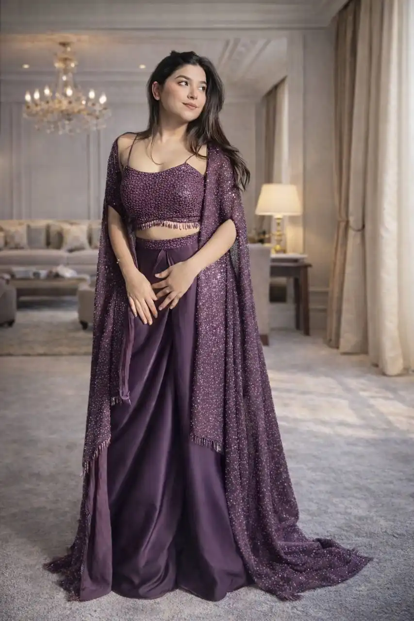 | Dhoti: | Crepe silk, with sequin embroidery belt (Free Size) Height: 42″ inches |