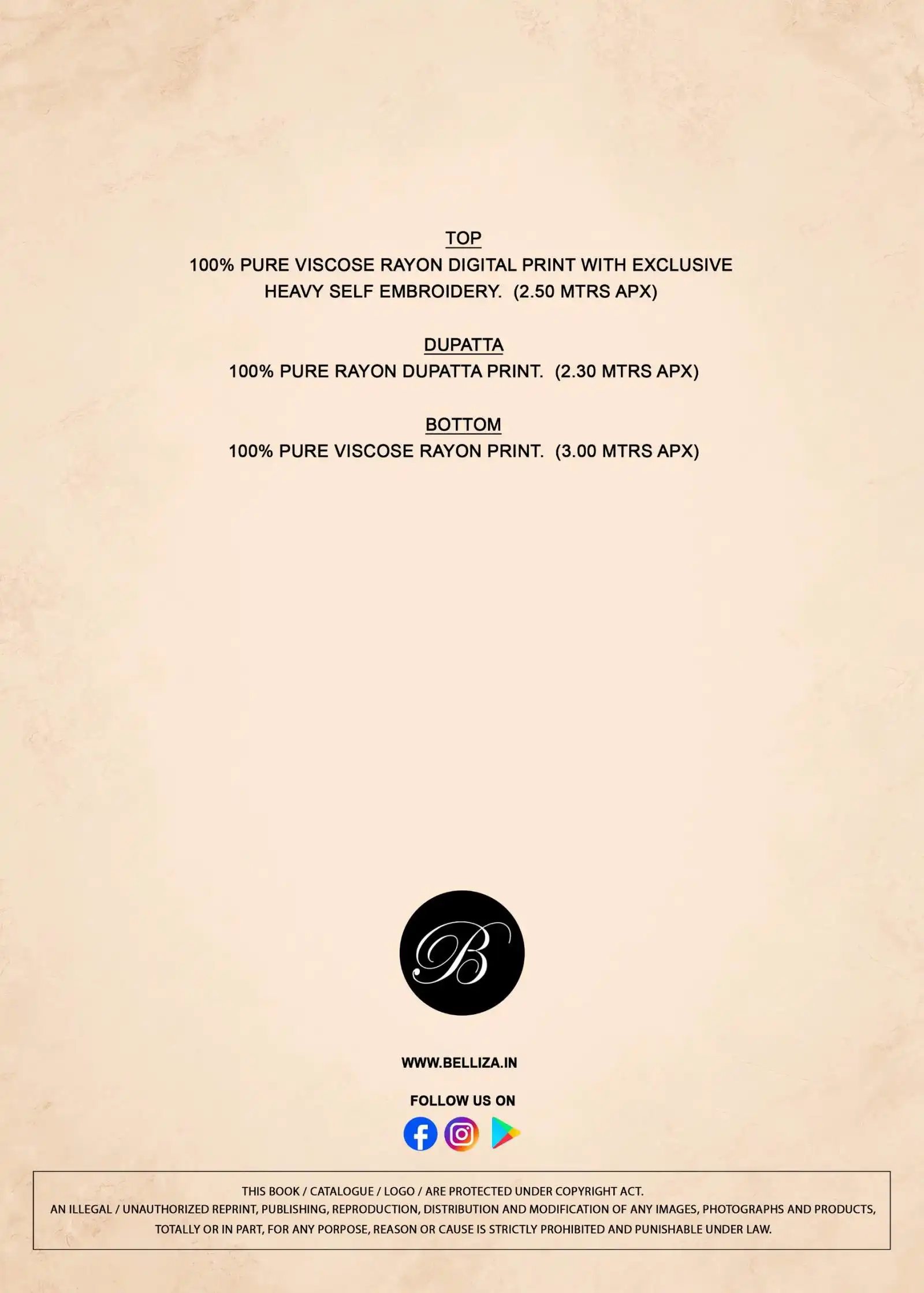 Belliza Dilkhush Viscose Rayon Digital Printed Dress Material | |