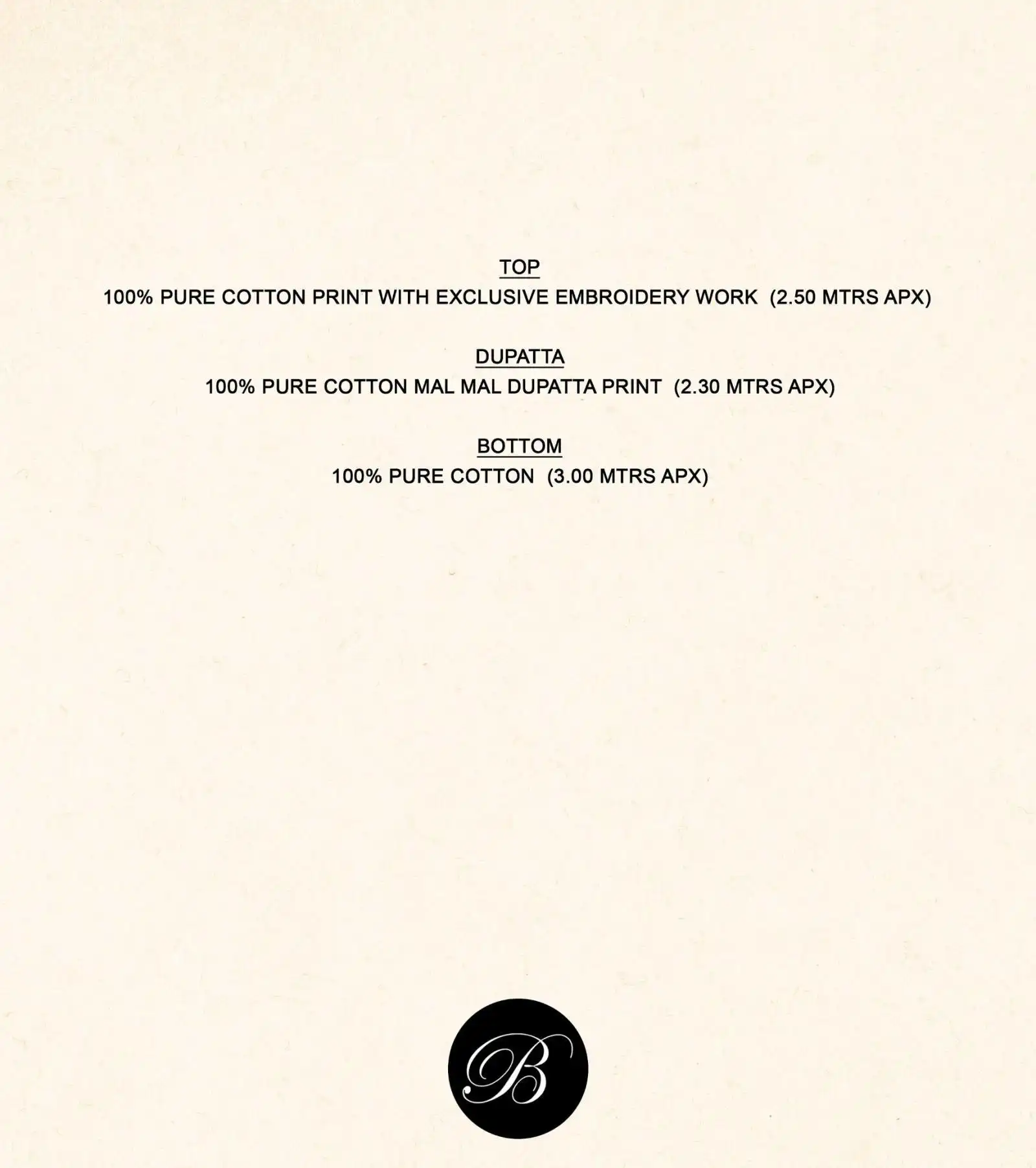 Dupatta: | 100% Pure Cotton Mal Mal Print (2.30 Mtr Apx) |