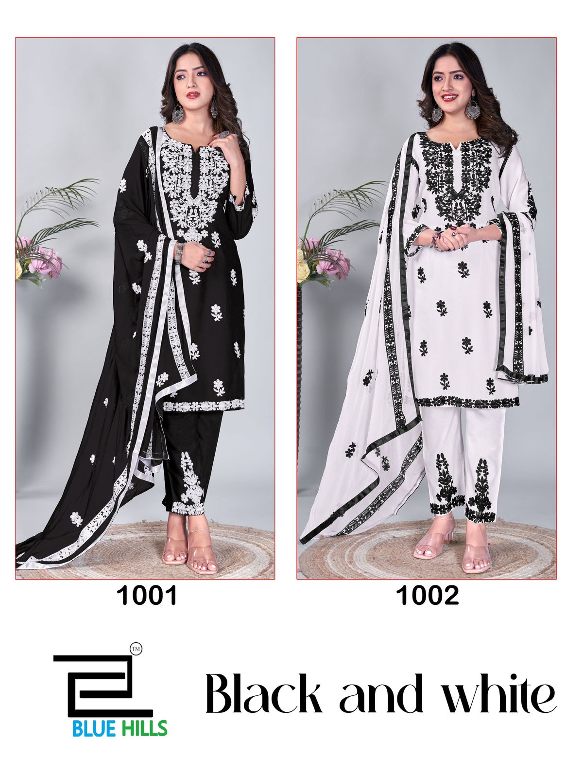 Catalog :- Blue Hills Black And White Rayon Kurti Bottom With Dupatta