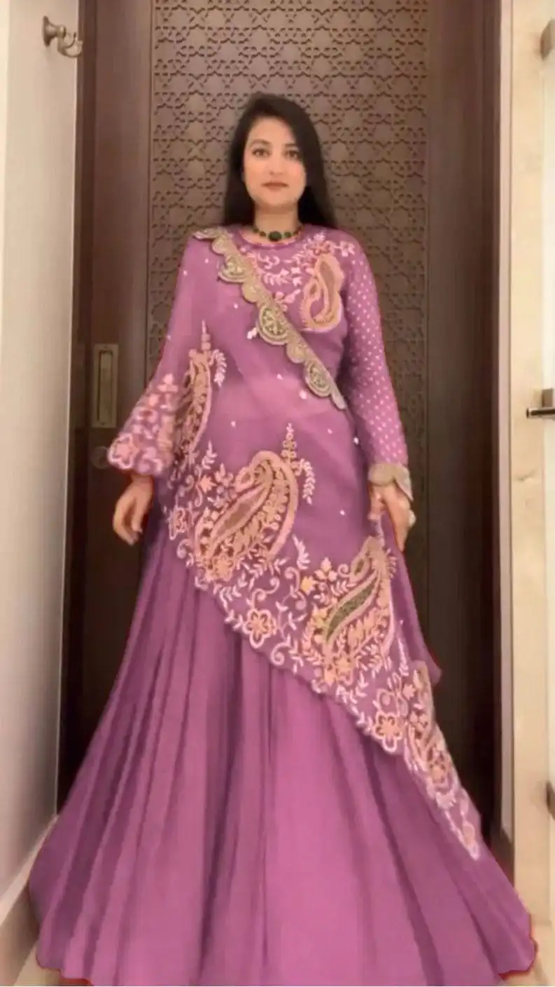 | Lehenga: | GEORGETTE WITH 4mtr FLAIR SIZE : FREE SIZE (FULLSTITCHED) HEIGHT : 41”inch |