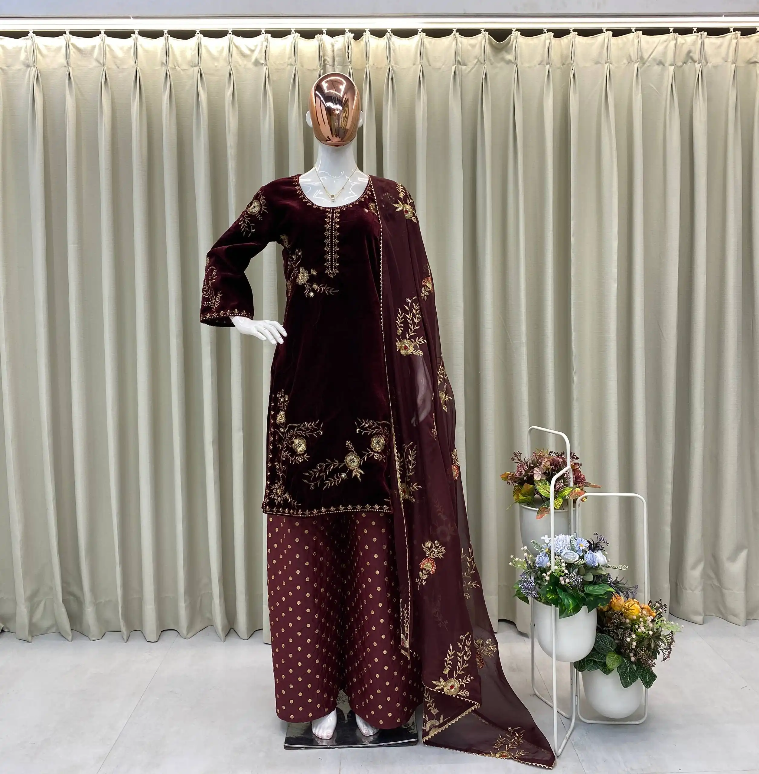BV 408 Velvet Embroidery Readymade Dress 04 Pcs Set