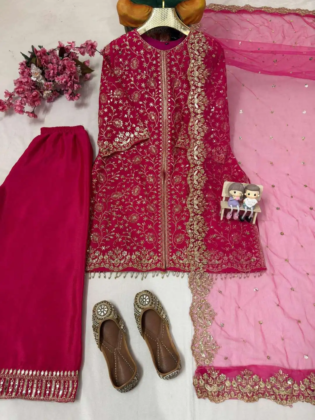 C585 1423 Chinnon Silk Wedding Sarara Suit 04 Pcs Set