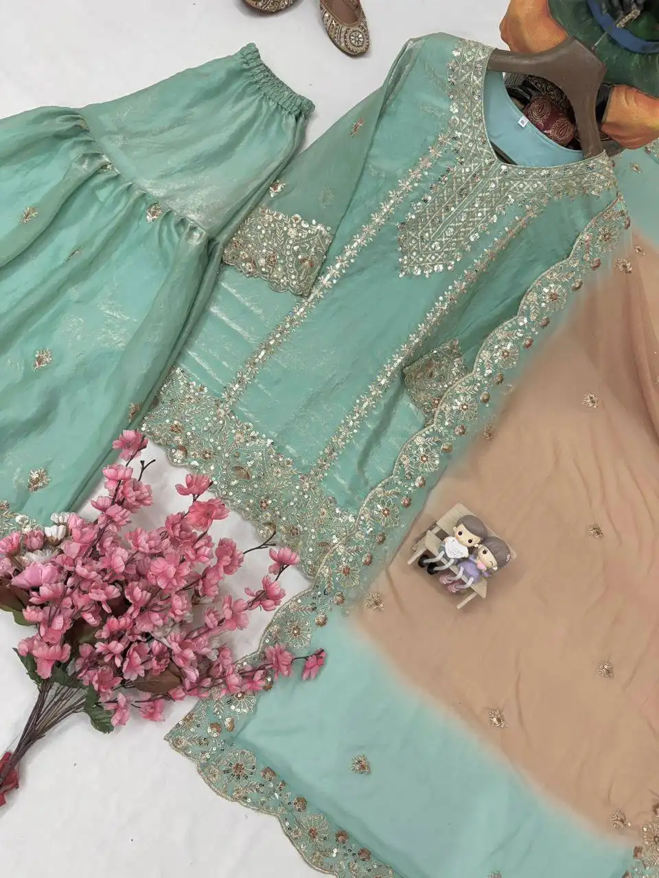 C585 1442 Fendy Silk Embroidery Sharara Suit Wholesale Market |