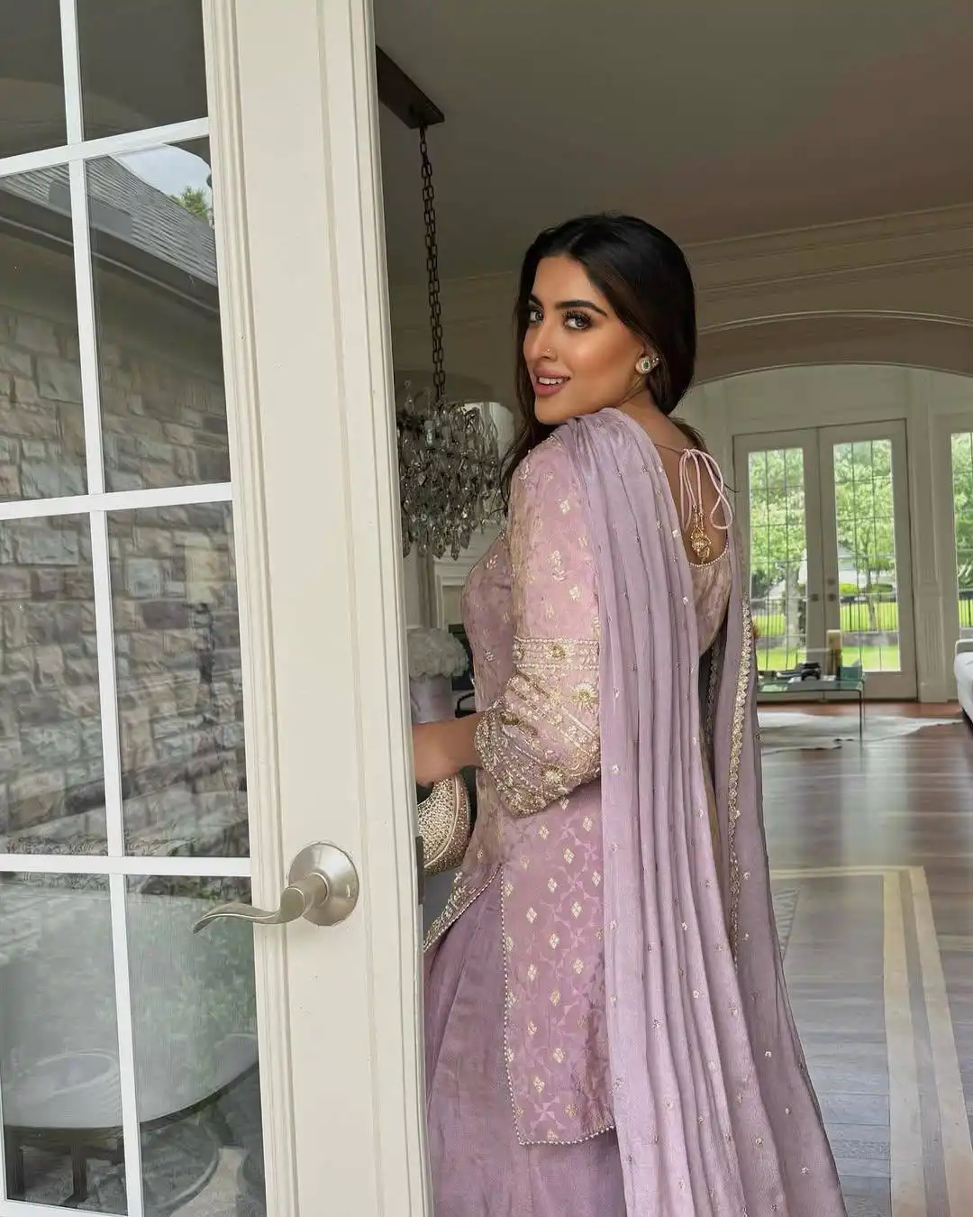 Bottom: | COSMOS SIMAR SILK Inner: micro Work : Beautiful 5mm sequins & zari embroidery work lace on border Size & Length: fully stitched to 2xl size (free size) & plazzo length is 40-41 inch |