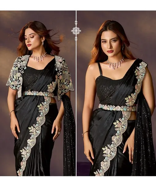Celeste 25912 Black Two Tone Satin Silk Ready To Wear Saree