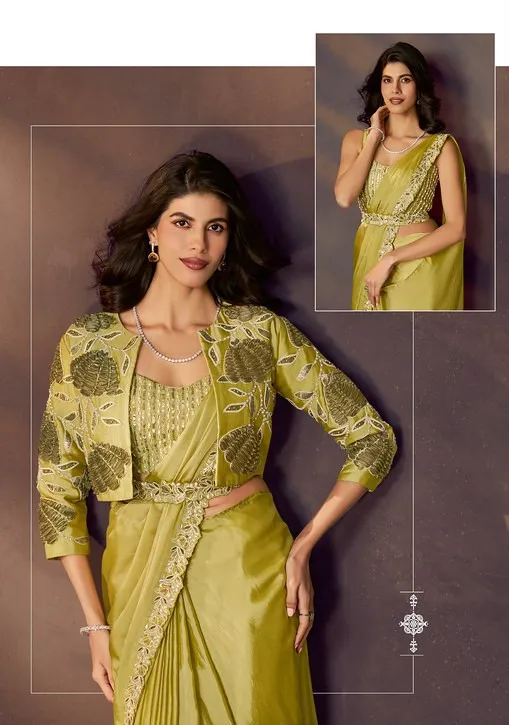 Celeste 25913 Olive Soft Satin Silk Ready To Wear Saree