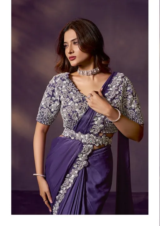 Celeste 25916 Soft Satin Silk Embroidery Ready To Wear Saree