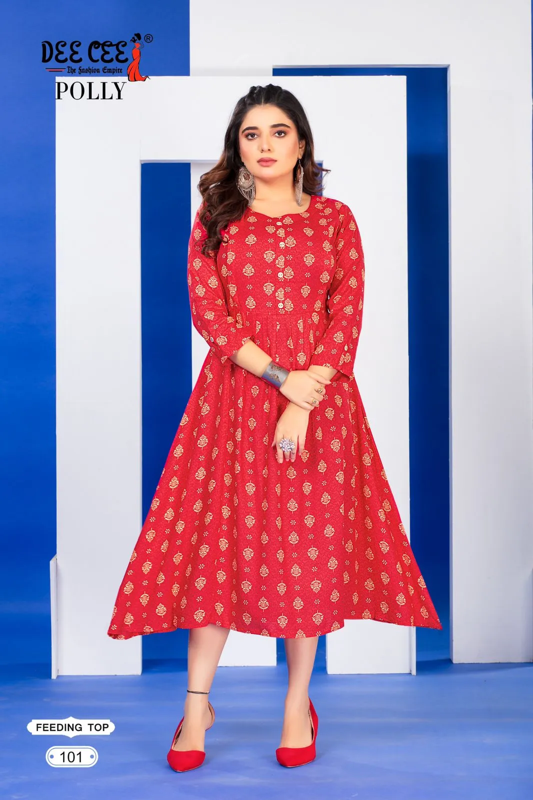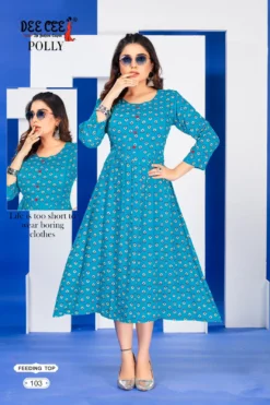 Catalog Name: Deecee Polly Rayon Printed Flared Feeding Kurti Wholesale