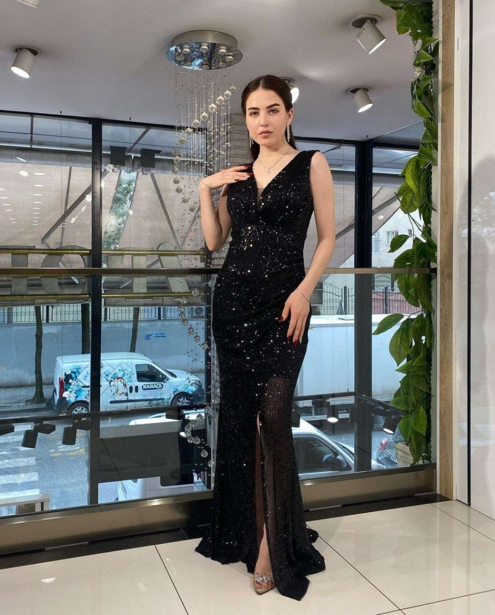 Sumshy Designer Georgette Sequence Work Bodycon Dress