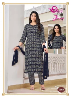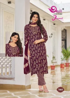 Devi Jannat Vol 7 Rayon Printed Kurti Bottom With Dupatta