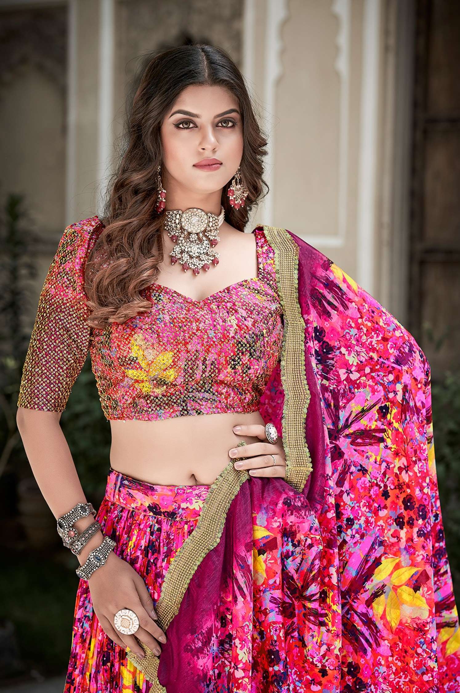 Sumshy Digital Printed Crushed Chinon Lehenga Choli