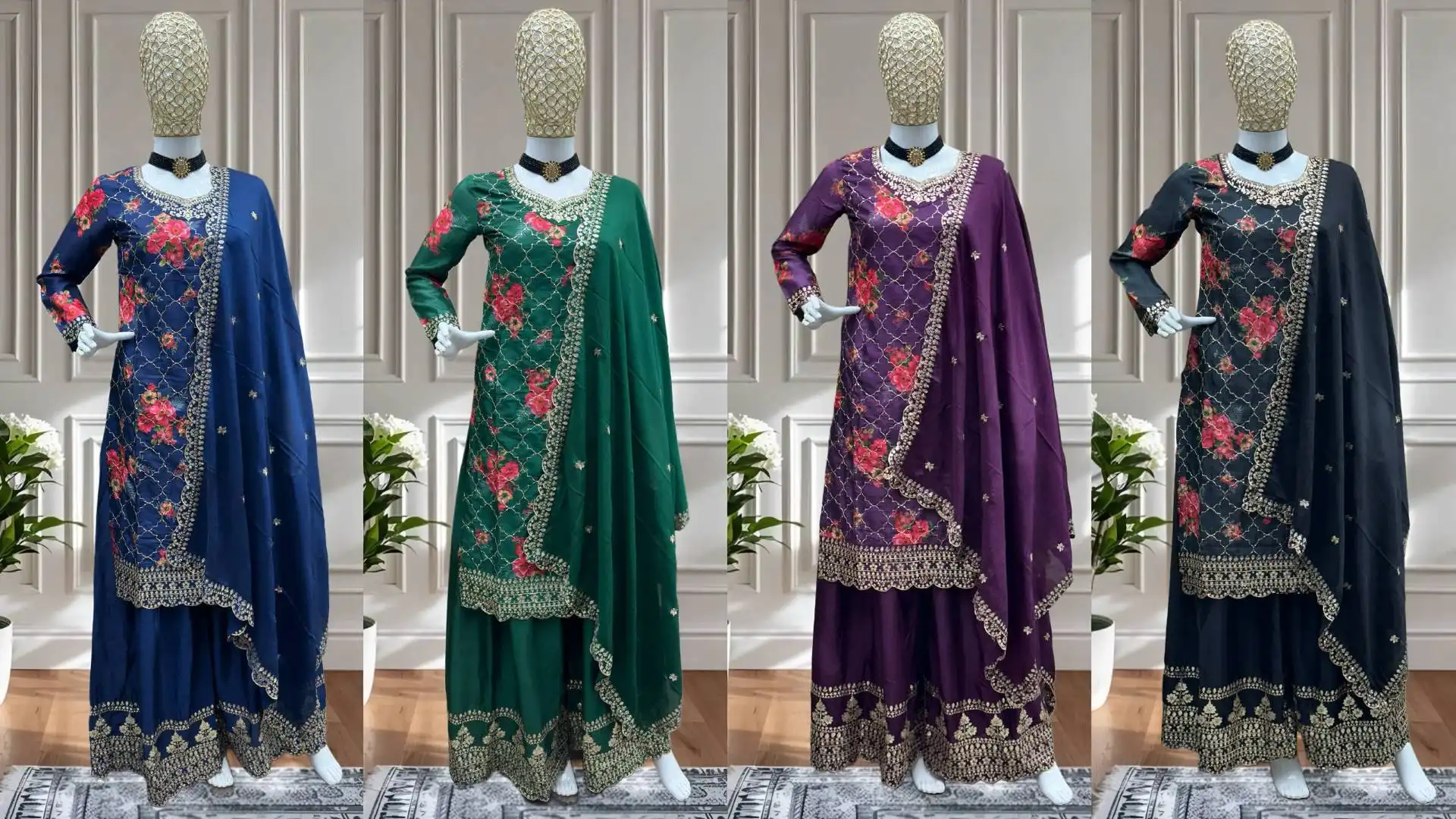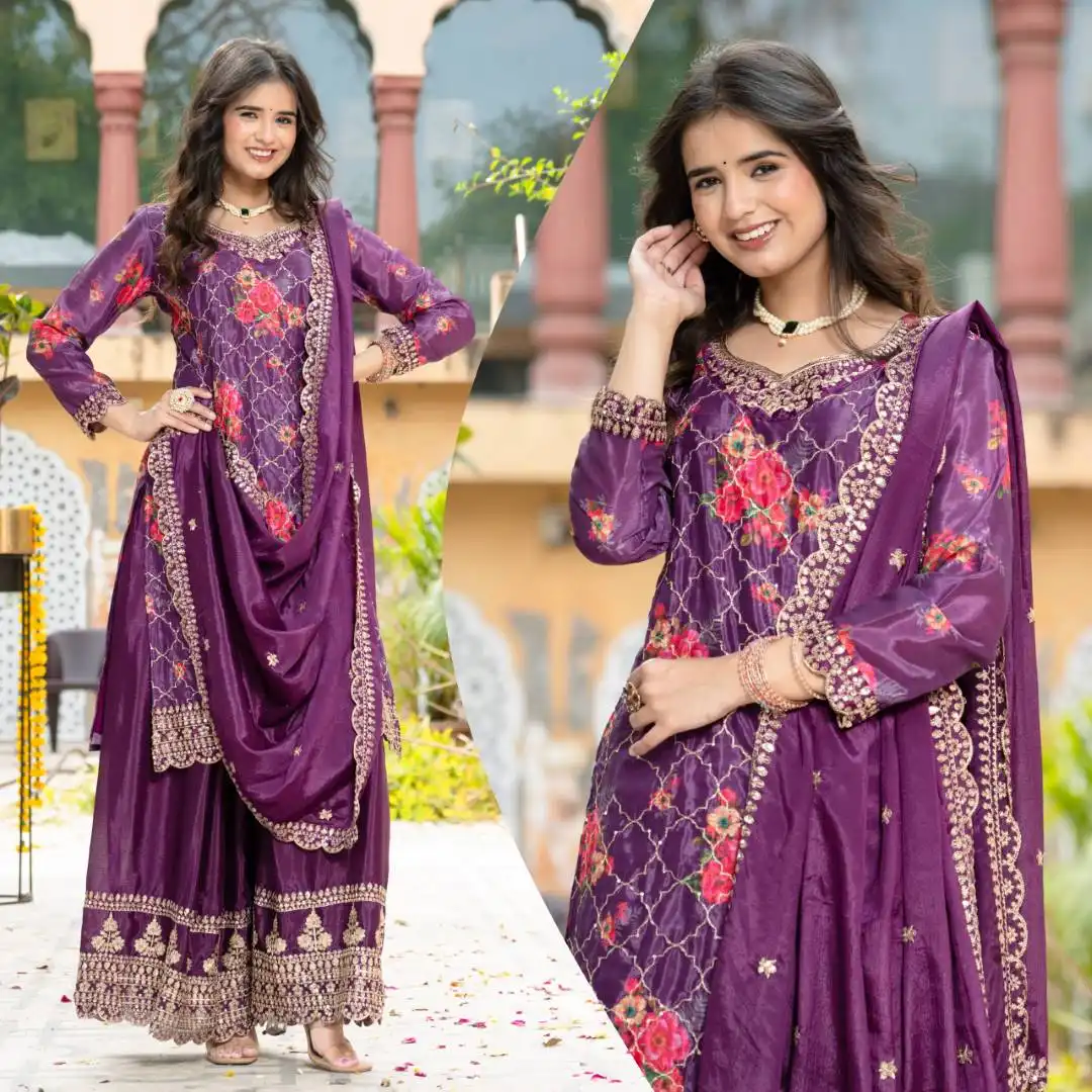 Dupatta: | Chinon Silk Work: Embroidery Sequence Design Work Lenth: 2 metre |