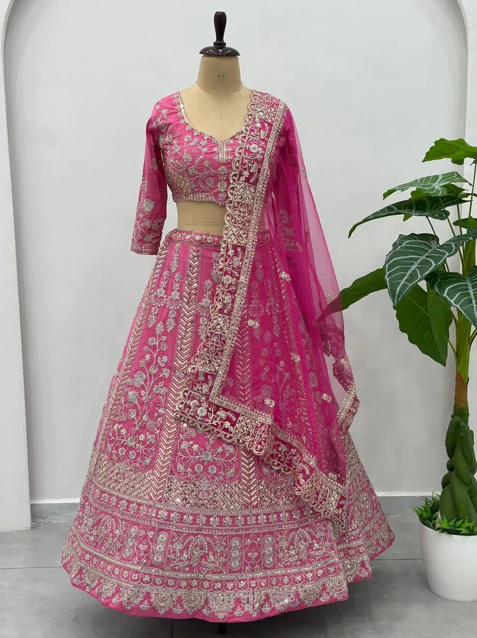Lehenga Natural Crap Silk, Work- Sequins and Codding Jari Embroidery Work, Waist- 42, Length- 42, Flair- 3 Meter, Inner- Micro Cotton With Cancan and Canvas (semi Steach)