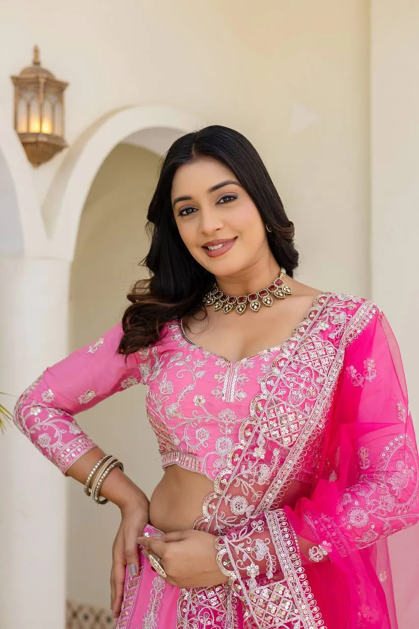 DKT 5148 Pink Natural Crap Silk Wedding Lehenga Choli