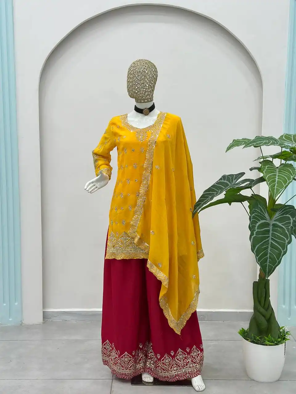 | Dupatta: | Chinon Silk Work: Embroidery Sequence Design Work |