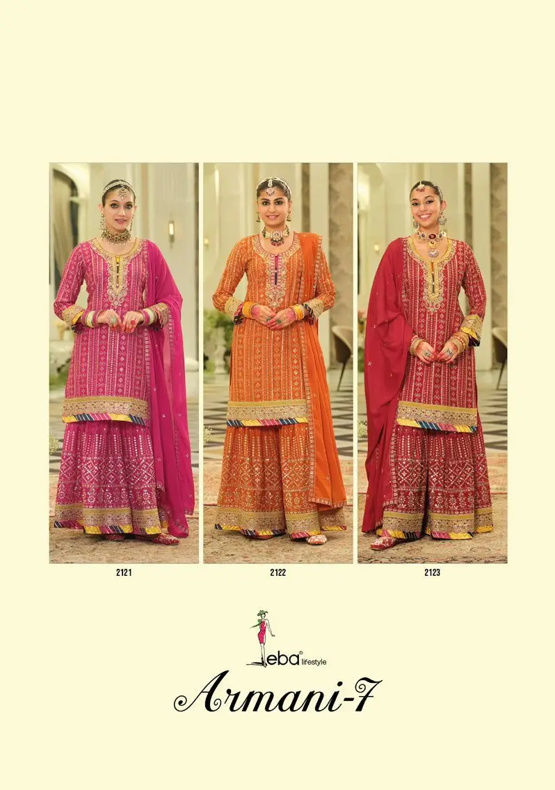 Catalog: | Eba Armani Vol 7 Chinon Sharara Suit With Embroidery |