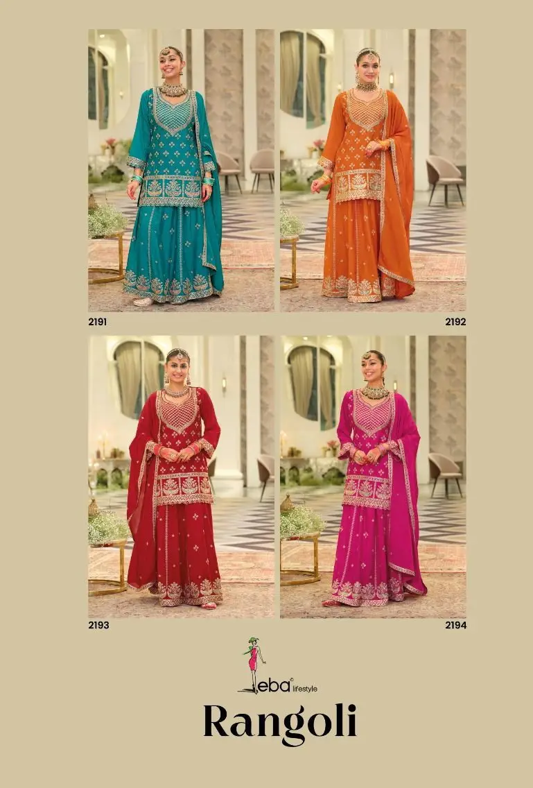 Catalog: | Eba Rangoli Chinon Embroidrey Sharara Suit Diwali Collection |