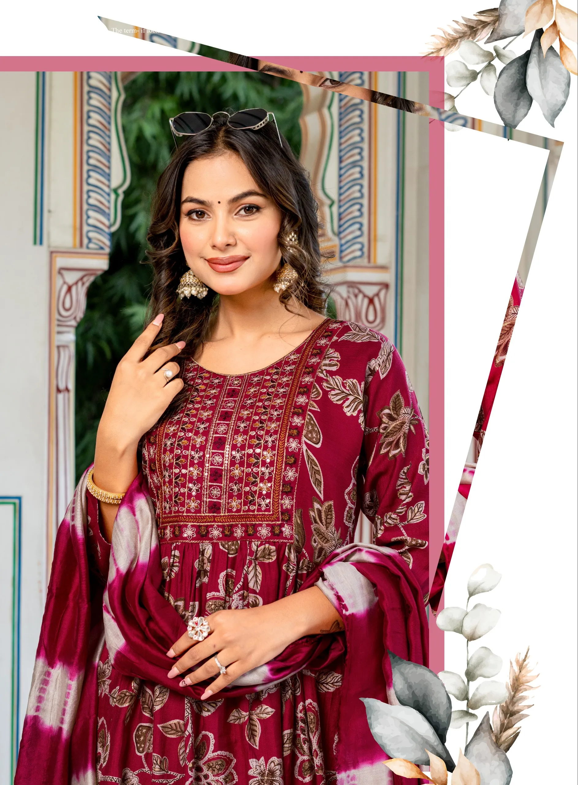 | Top | Heavy Vetican Printed With Foil Print And Embroidery Work Patch On Neck |