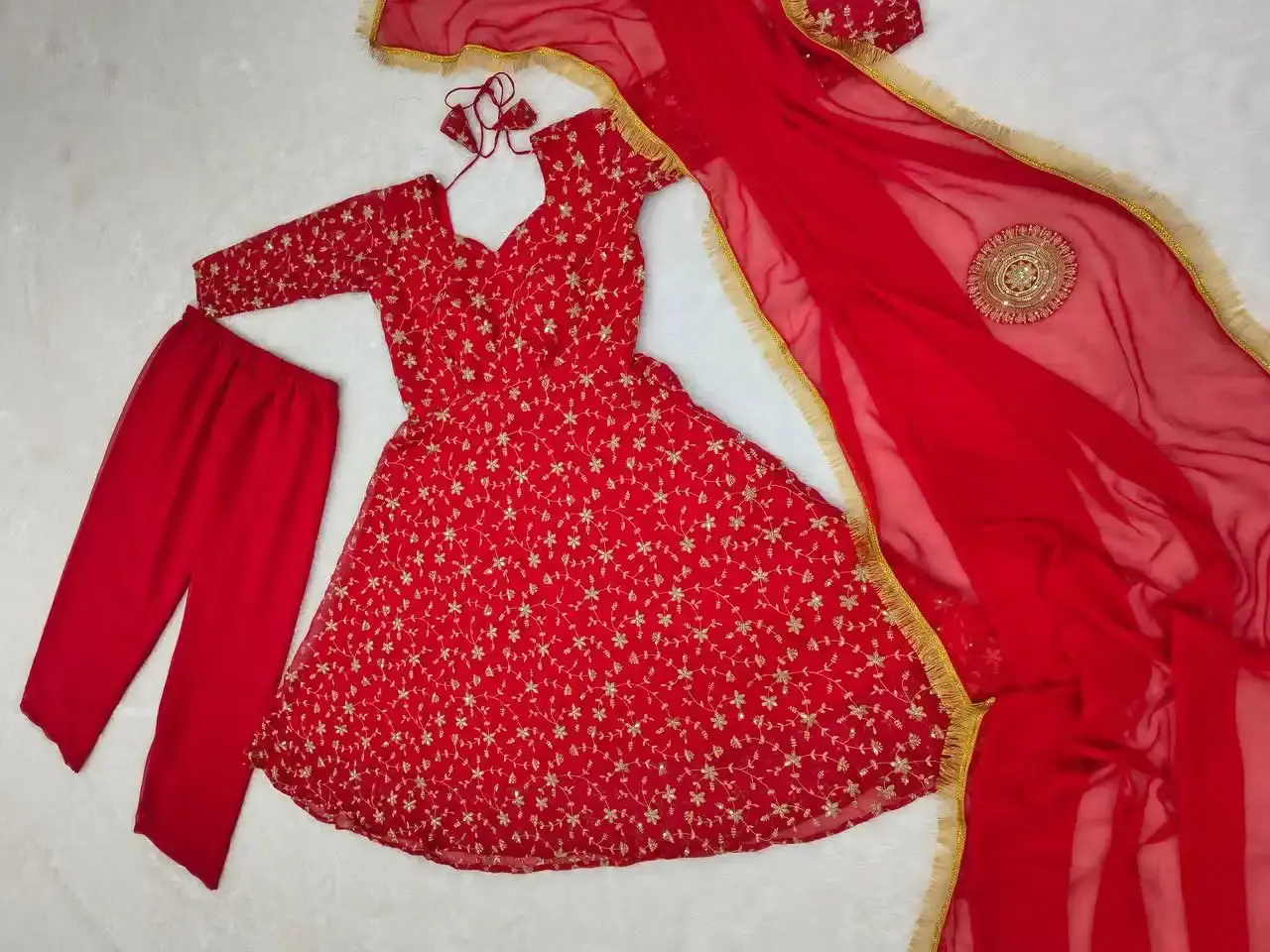 HCR 1104 Red Faux Georgette Zari Sequins Work Readymade Dress Wholesale Market In India |