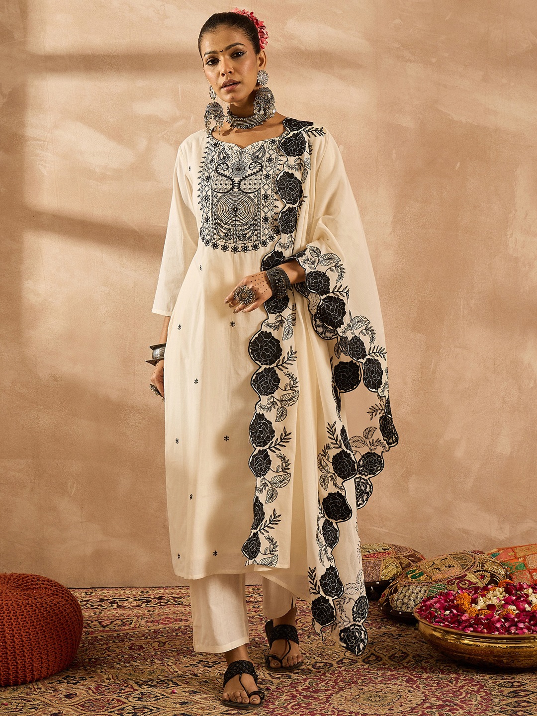 Top: | Cotton With Floral Embroidered Kurta With Trouser And Dupatta |
