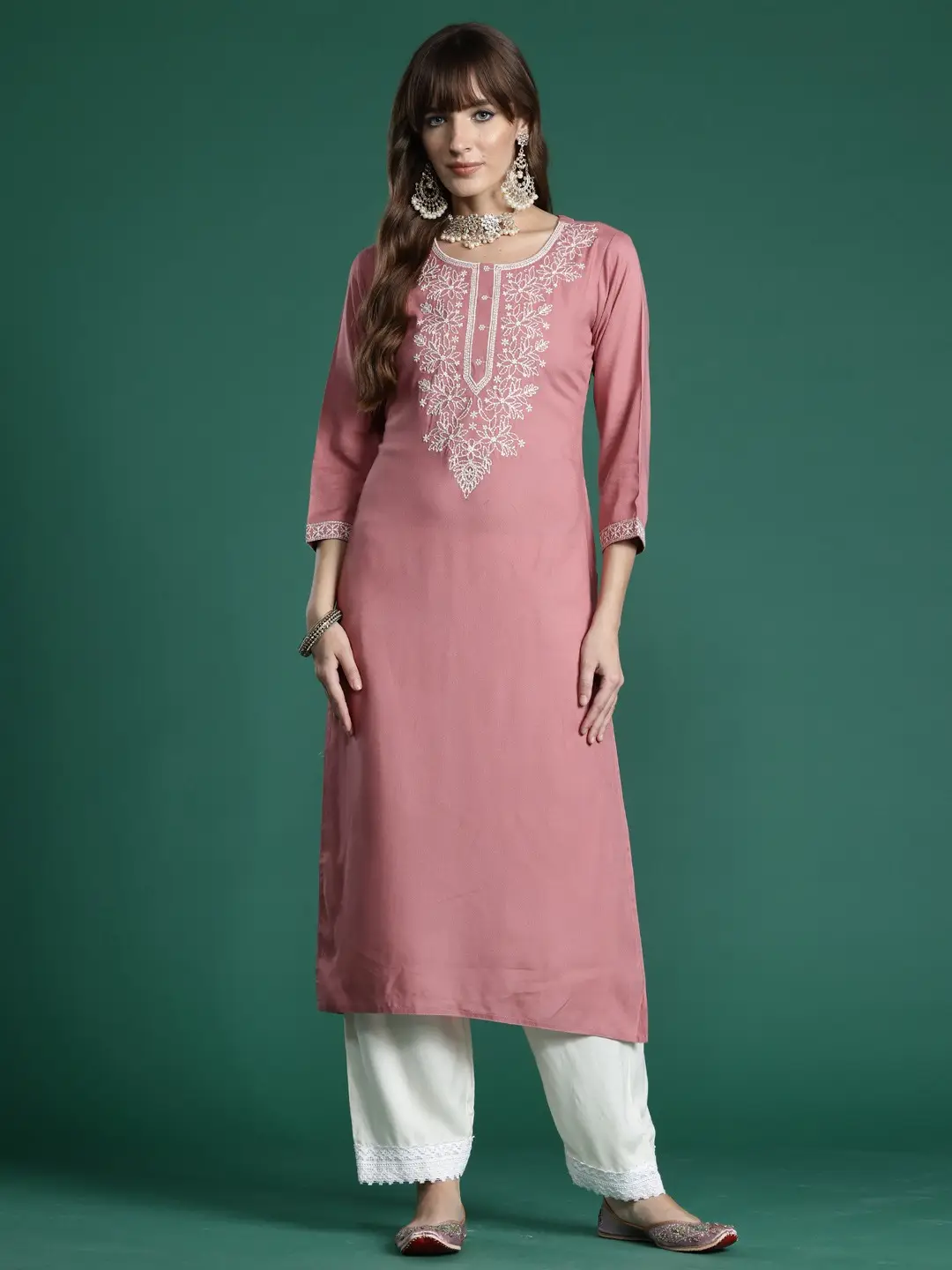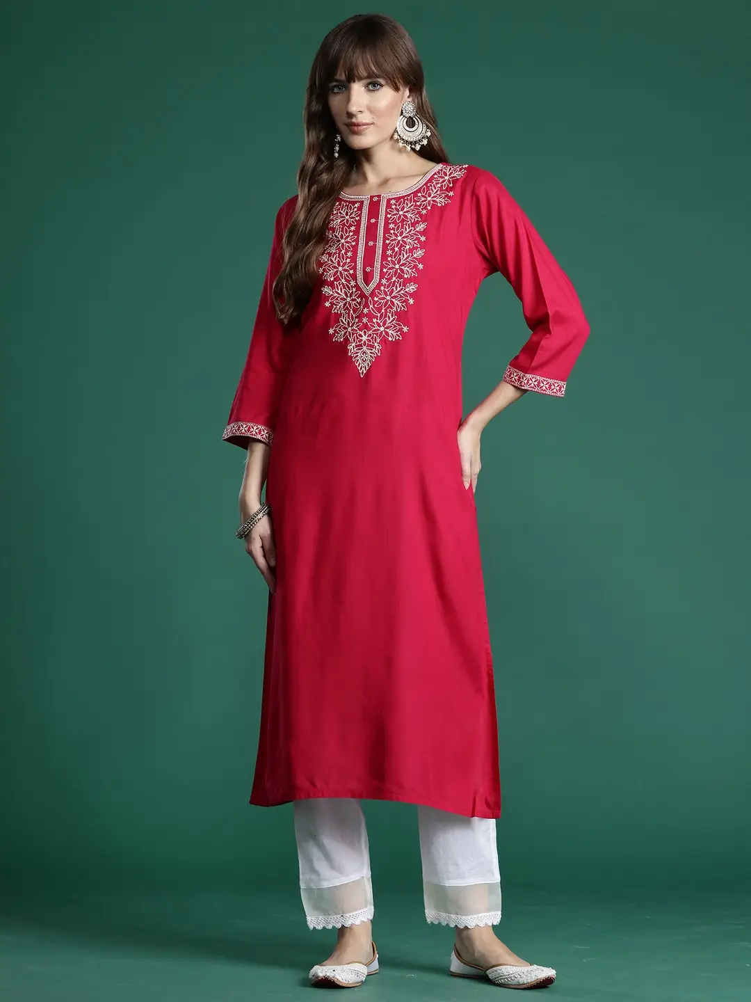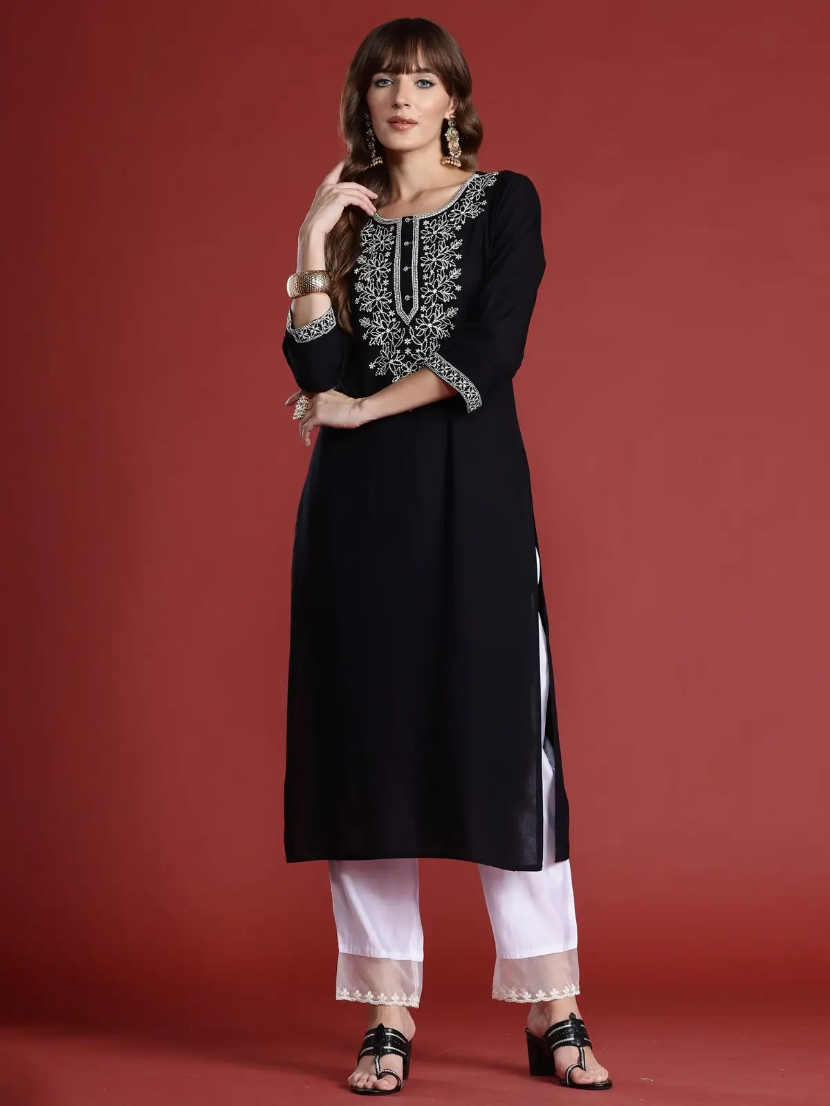 Top: | Floral Embroidred Thread Work Viscose Kurta |