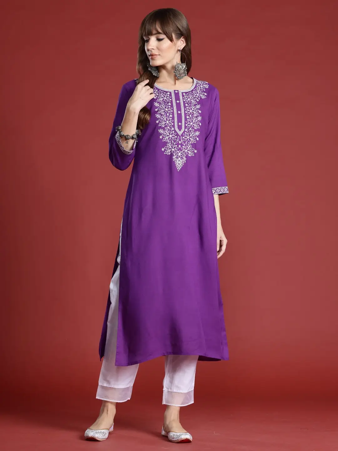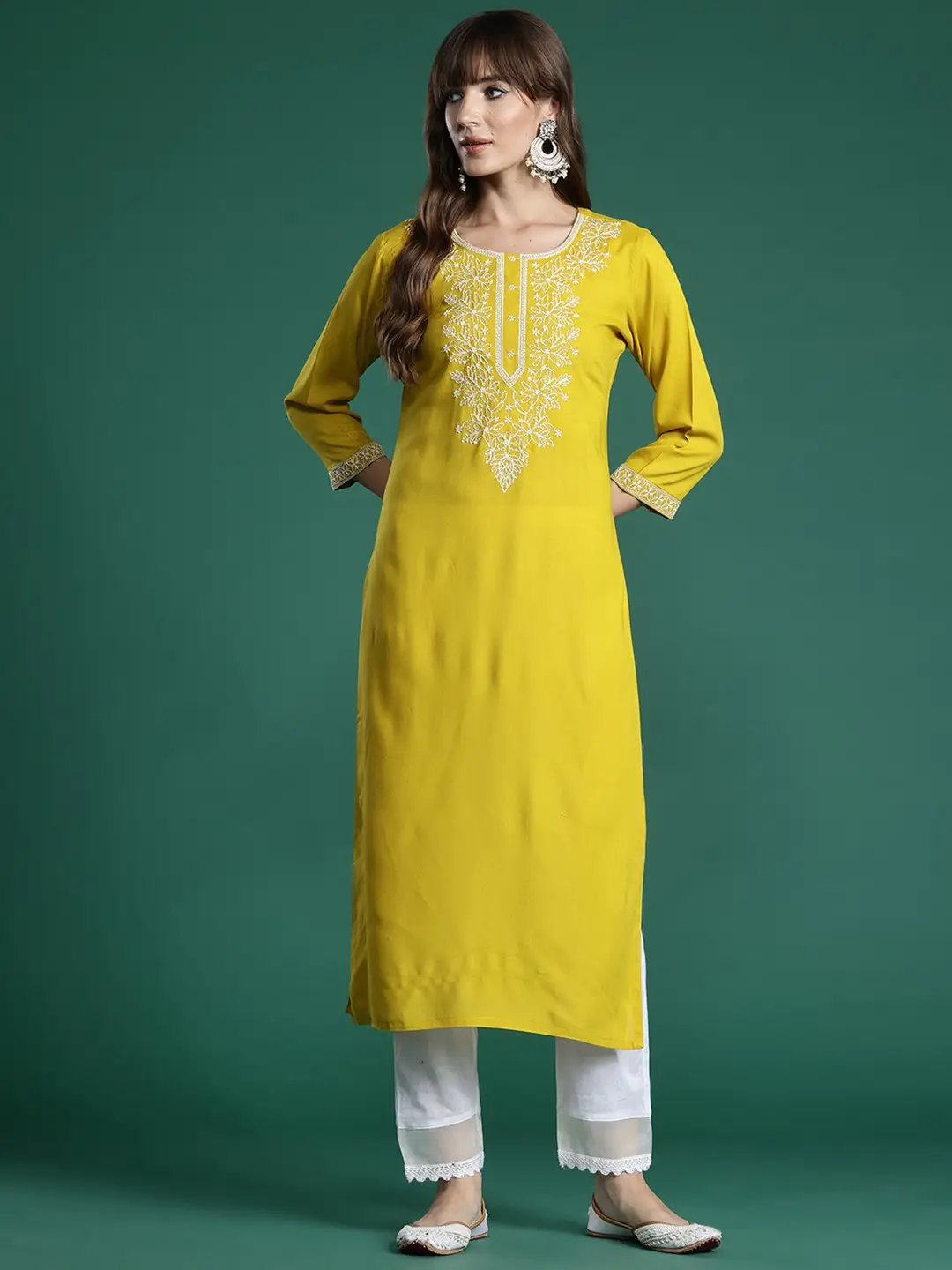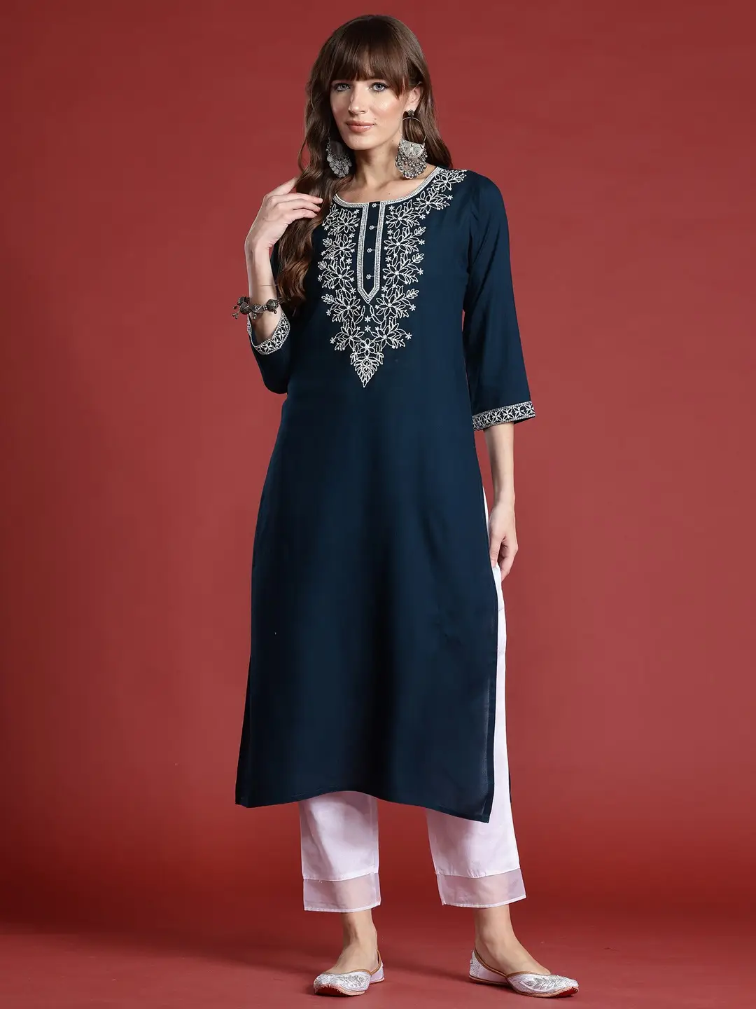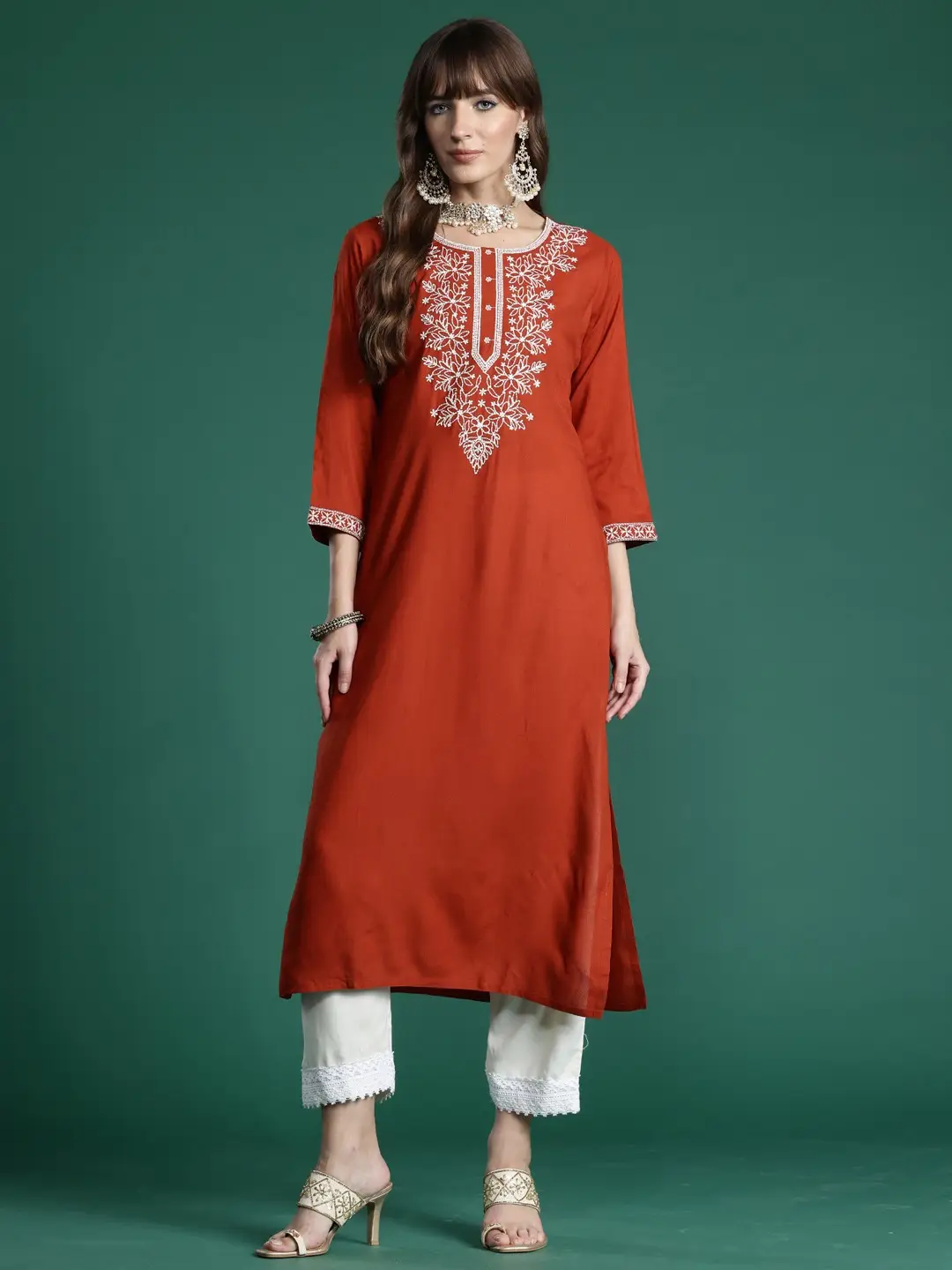 Top: | Floral Embroidred Thread Work Viscose Kurta |