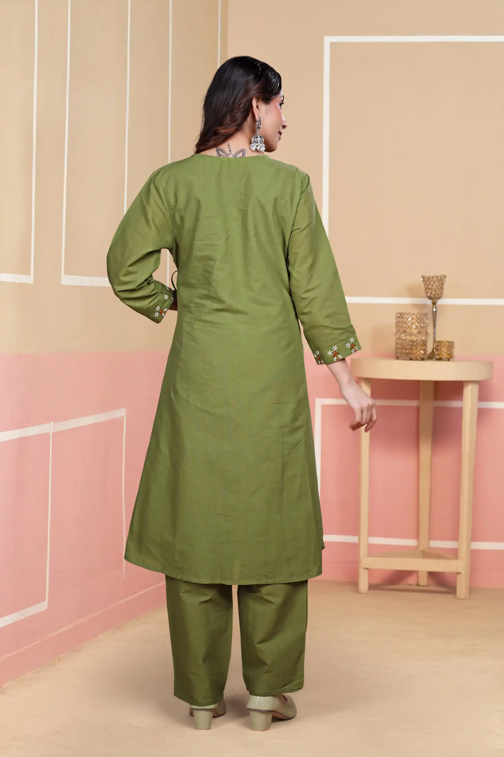 Top: | Soft Mal Cotton Wrap-style kurti with side tie-up detail for a modern twist Matching straight-fit pants for a complete outfit |
