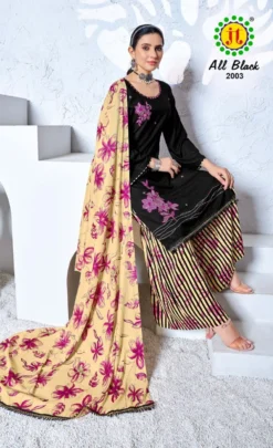 Jt All Black Vol 2 Rayon Dress Material For Ladies